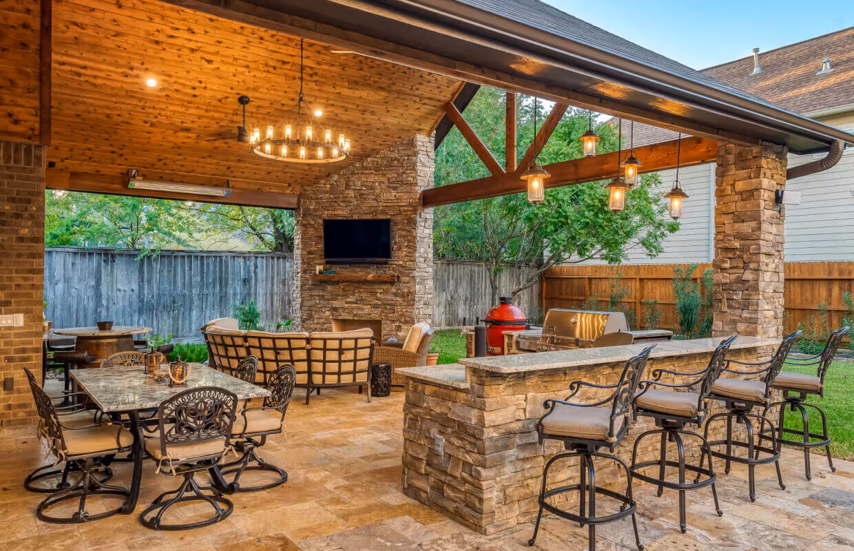 Create your Texas outdoor living room with Allied Outdoor Solutions. Our design-build experts help with decisions and key features – get your free consultation!