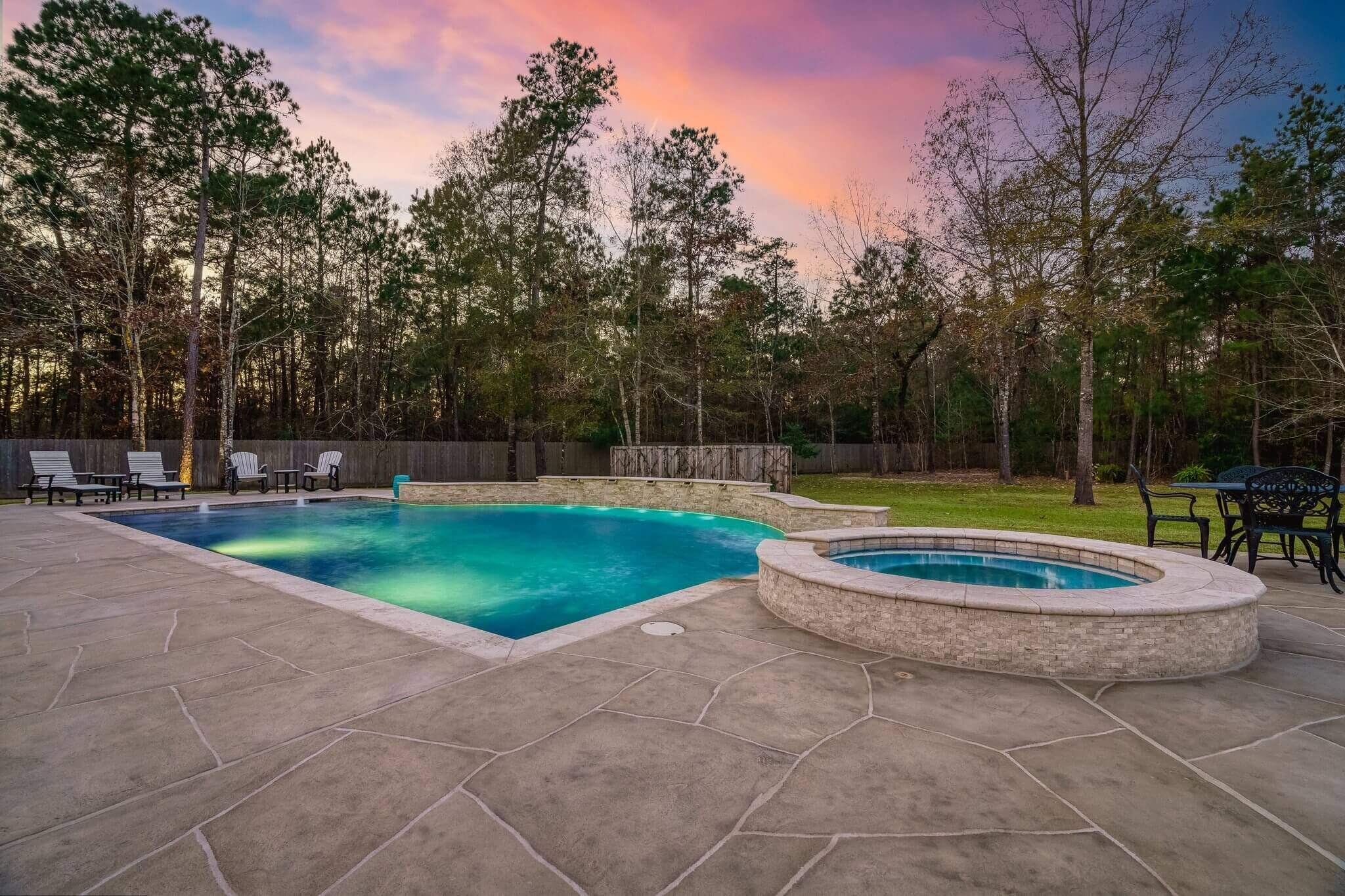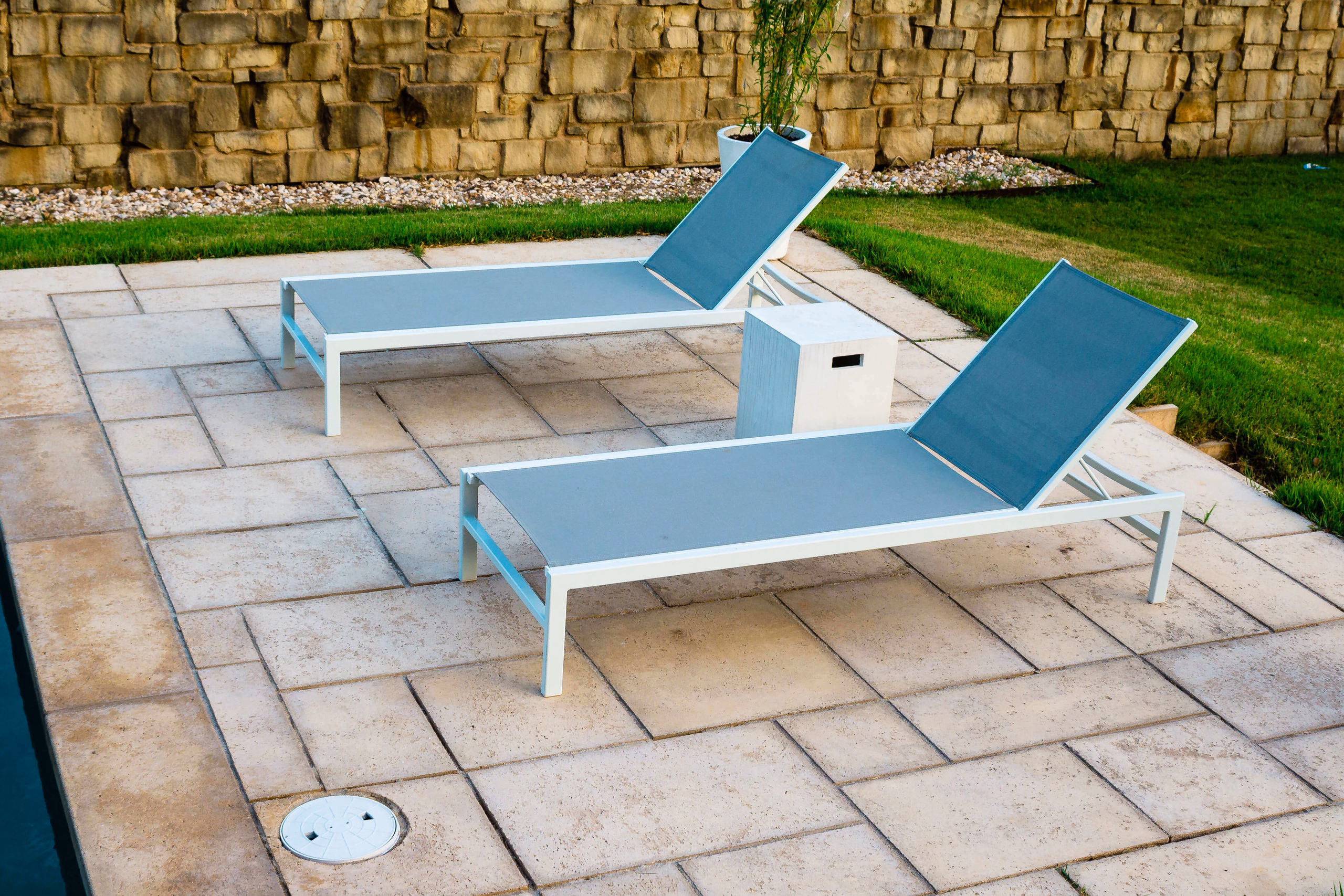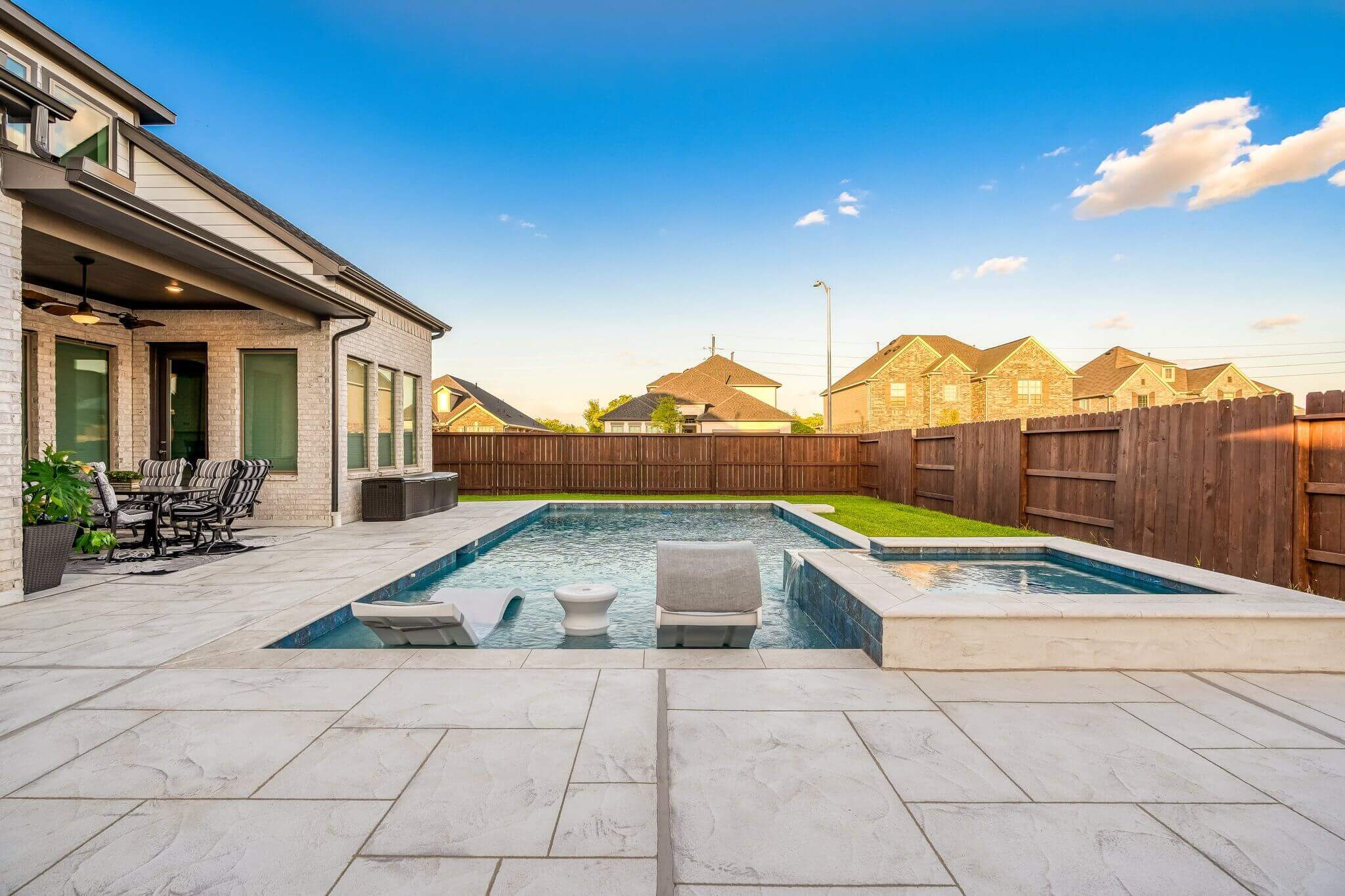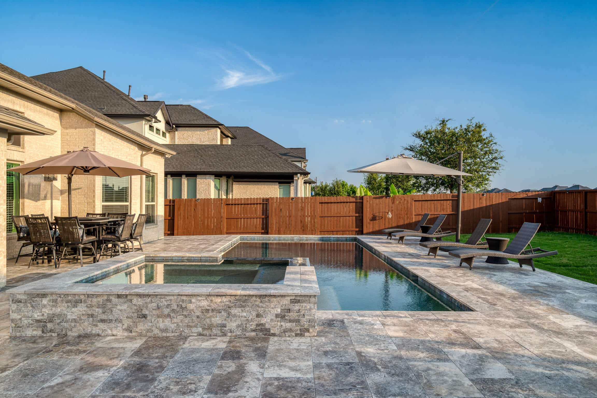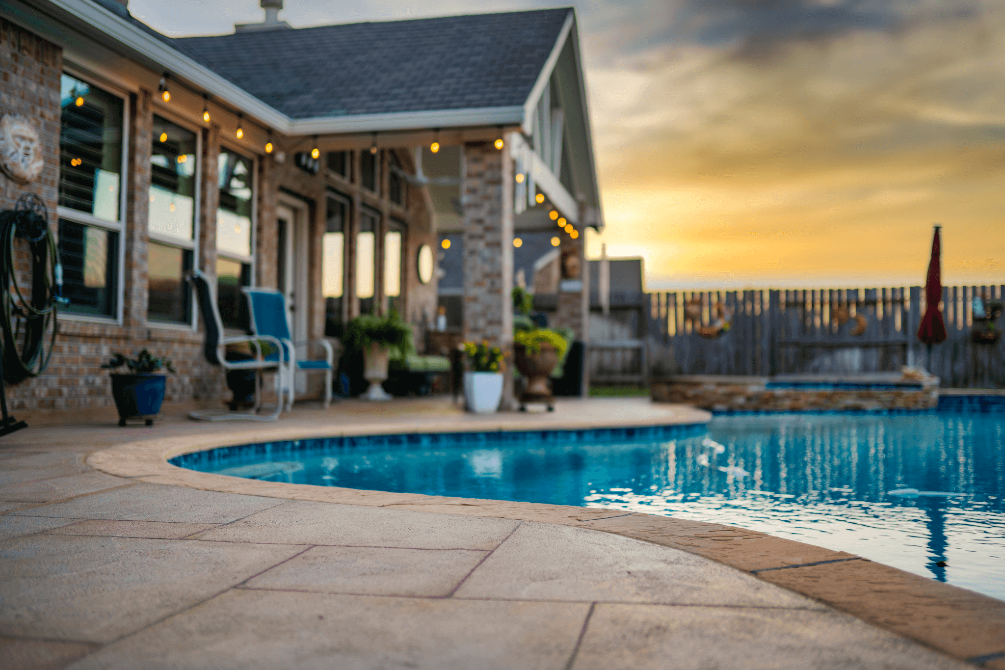 Relaxing Outdoor Living AreaBackyard Patio Hangout SpaceSerene Backyard Patio RetreatNeutral Carvestone Pool Deck