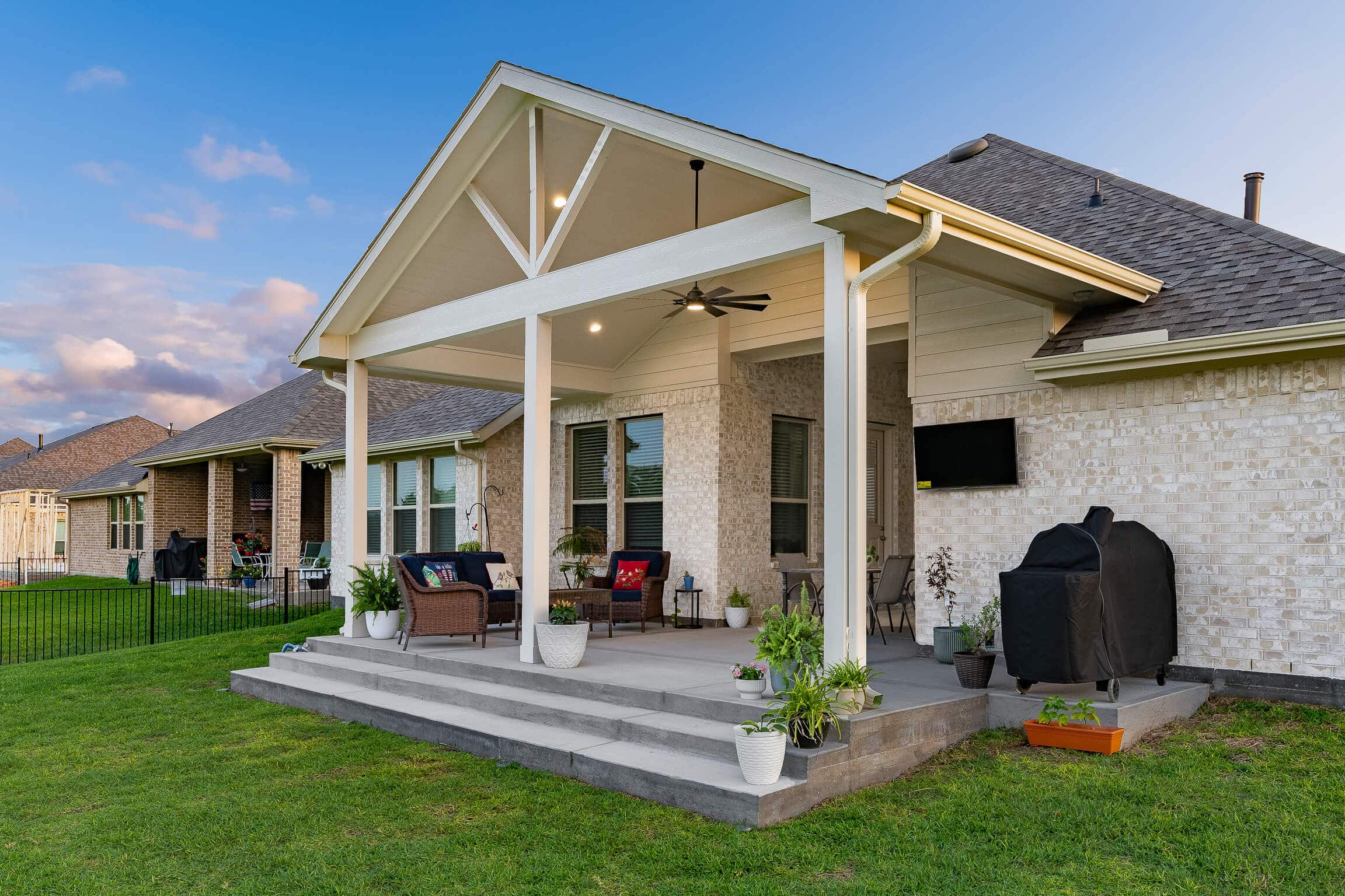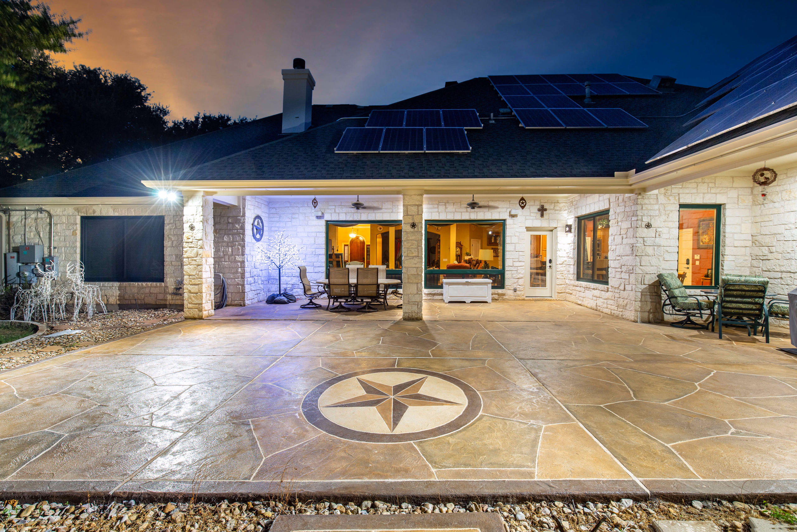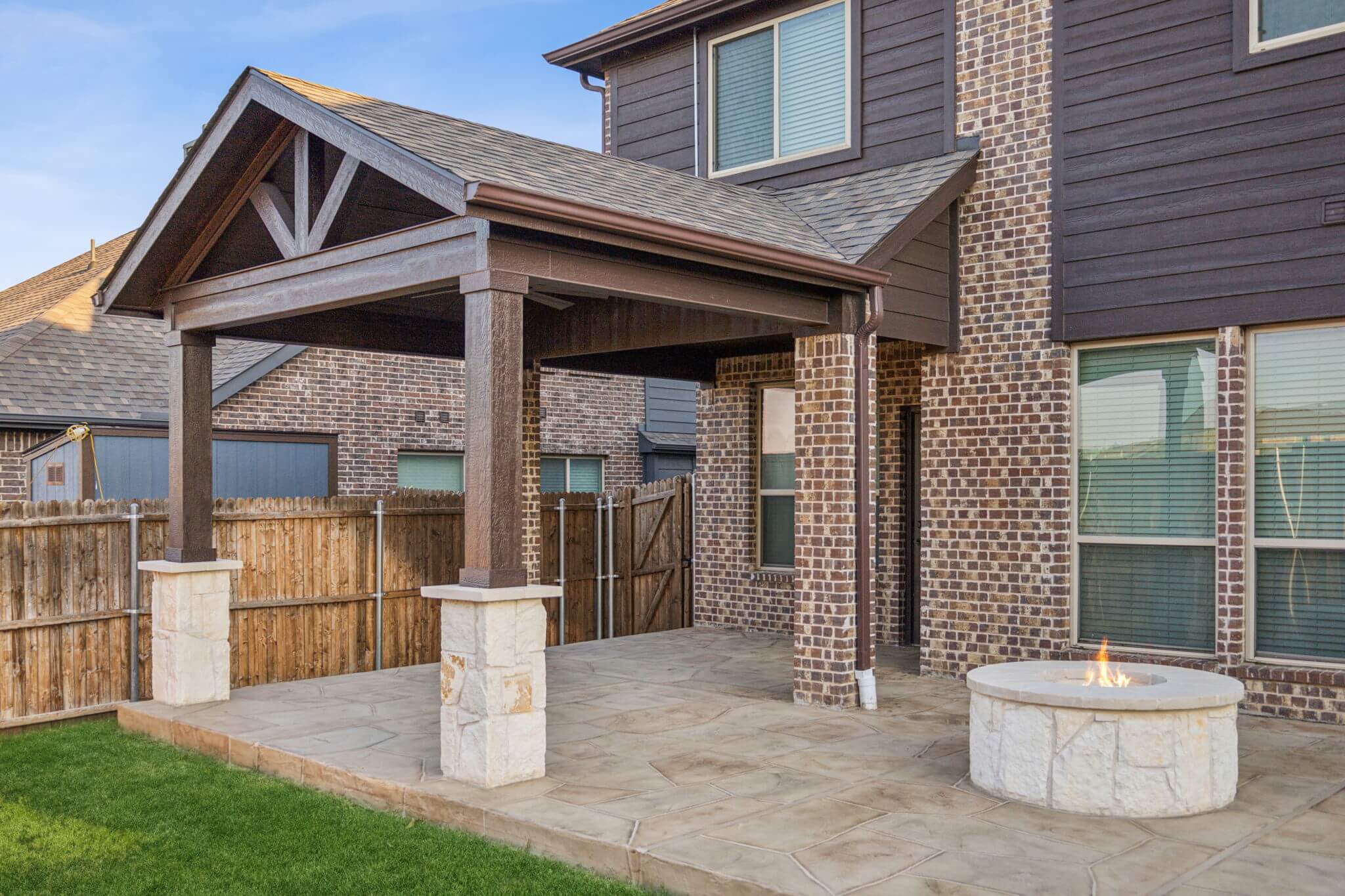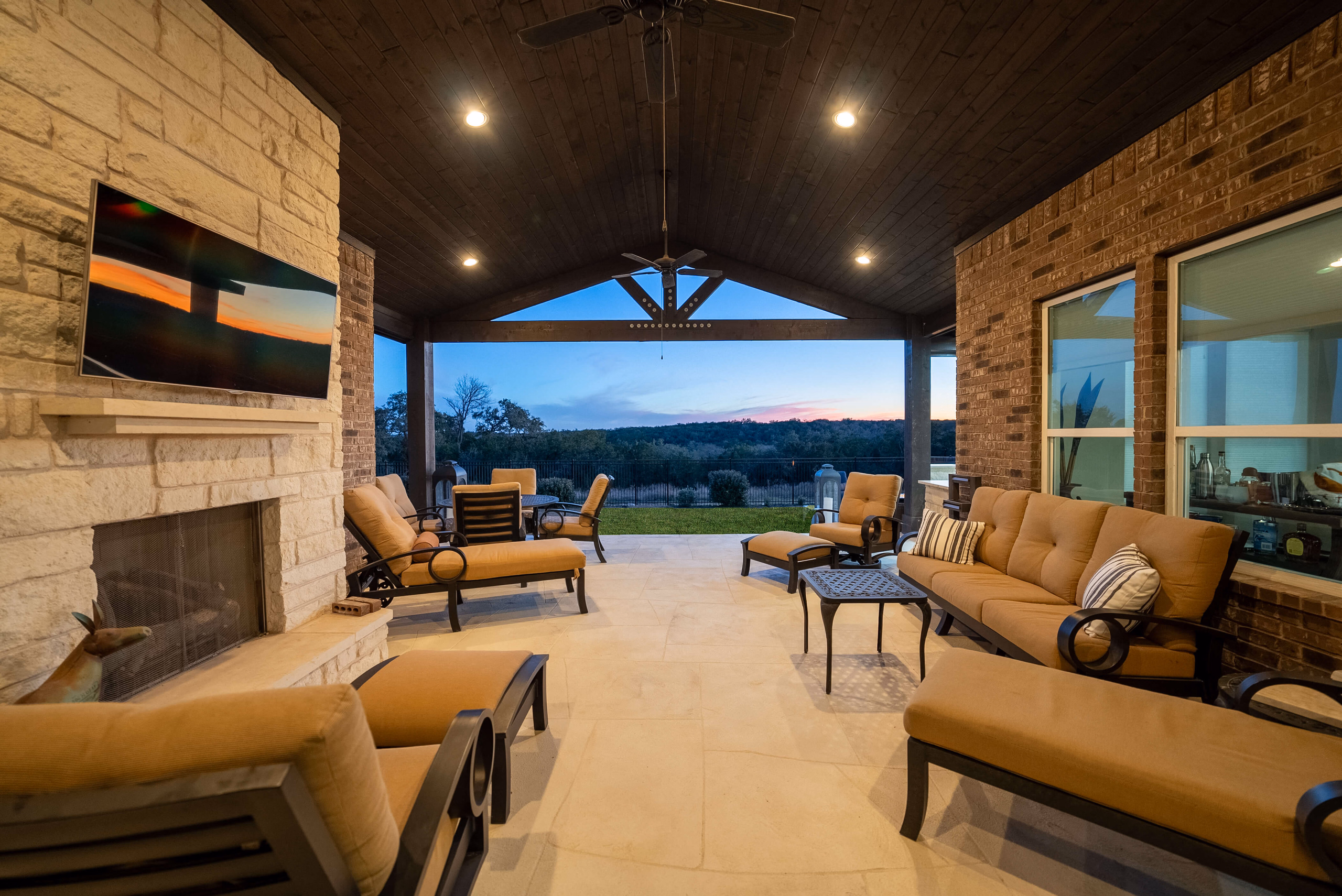 Lakeside Firepit & Seating WallComfortable Backyard PatioConcrete Patio in a Central Texas BackyardAluminum Patio Cover in Texas