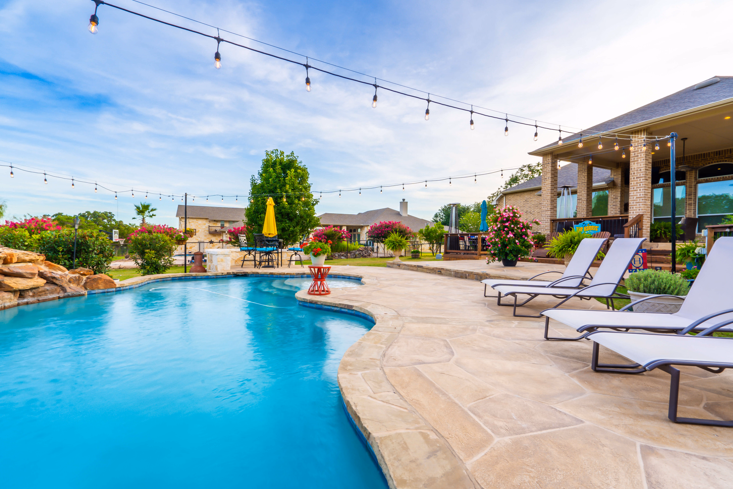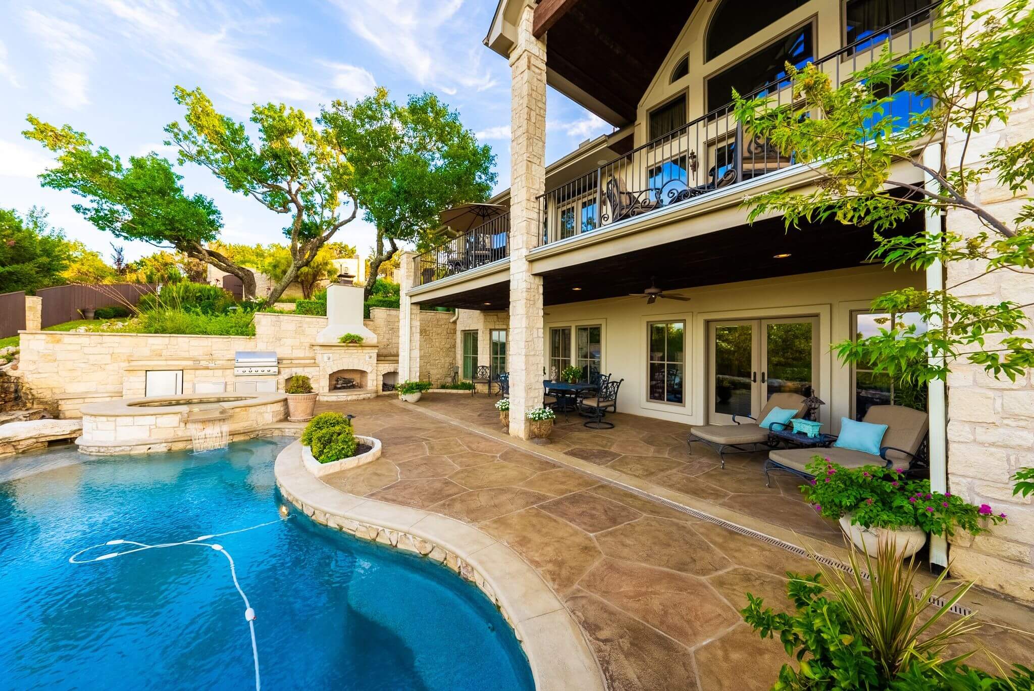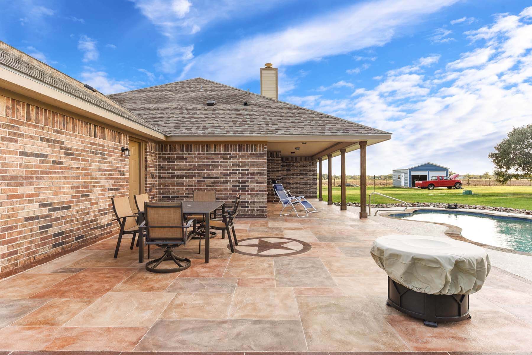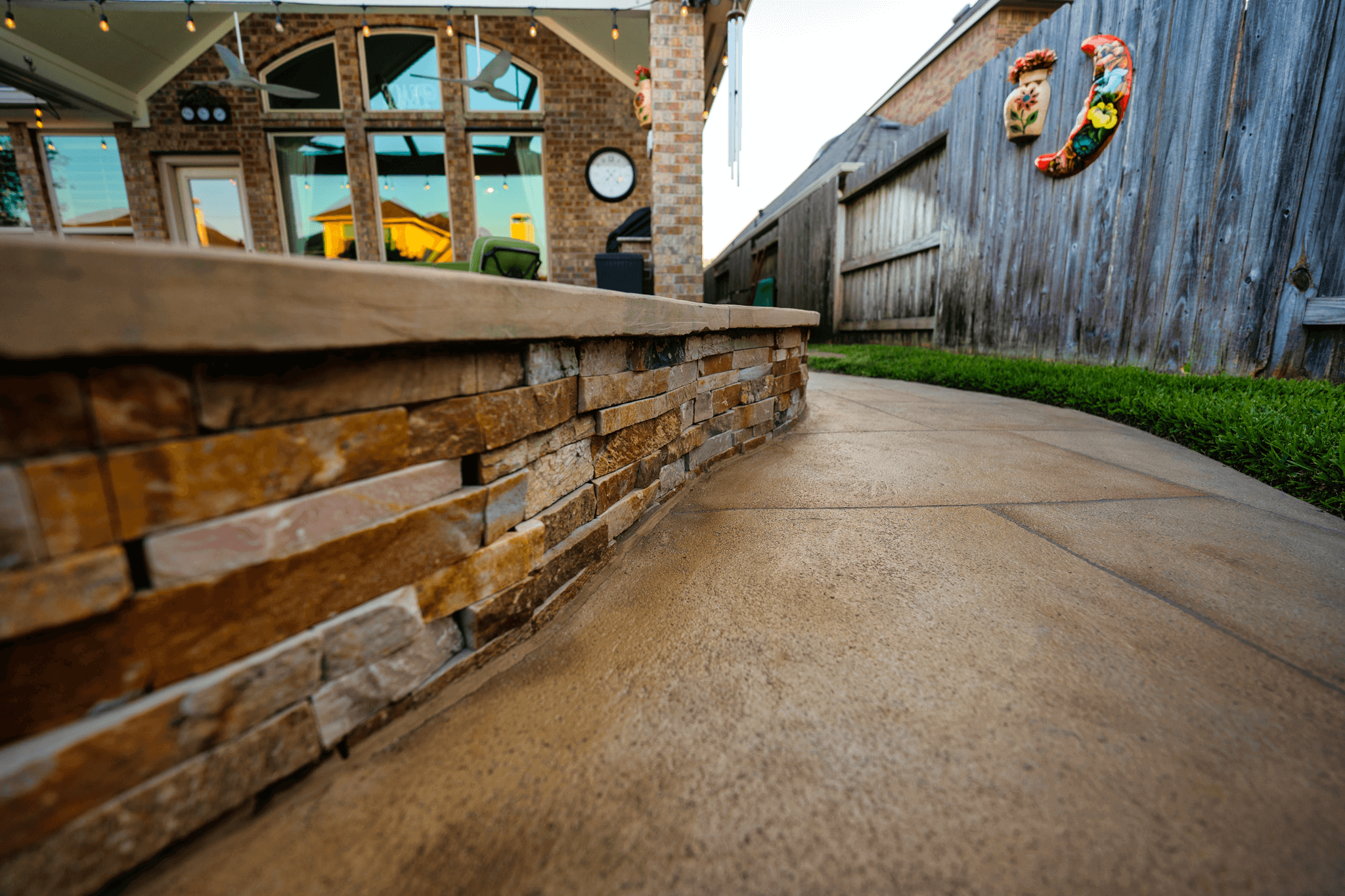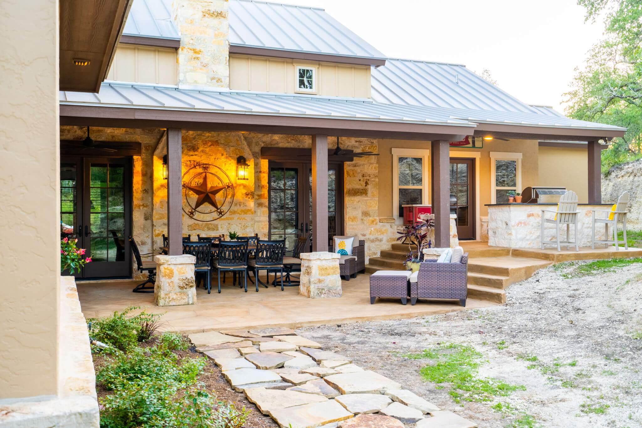 Lakeside Firepit & Seating WallComfortable Backyard PatioConcrete Patio in a Central Texas BackyardAluminum Patio Cover in Texas