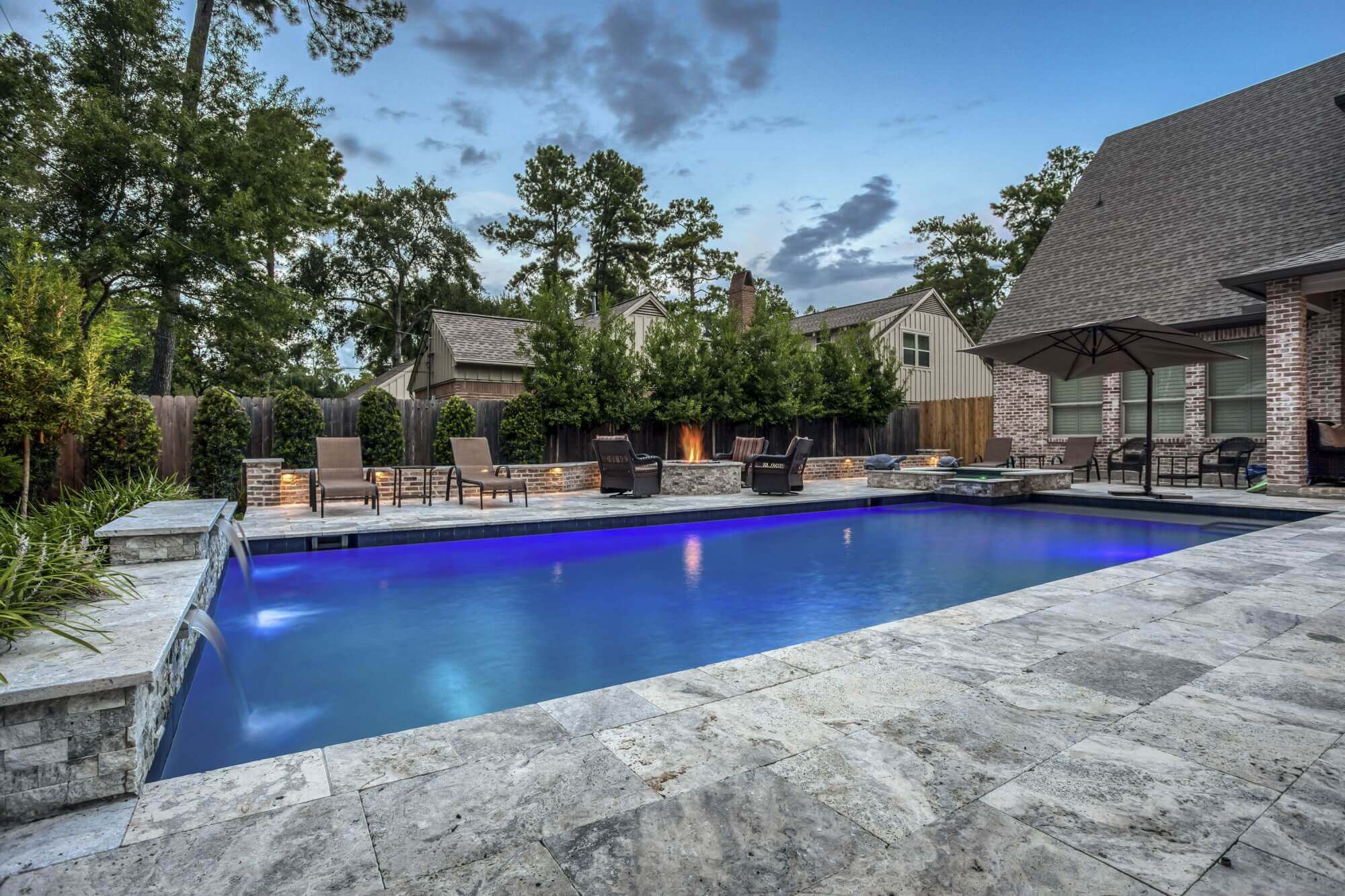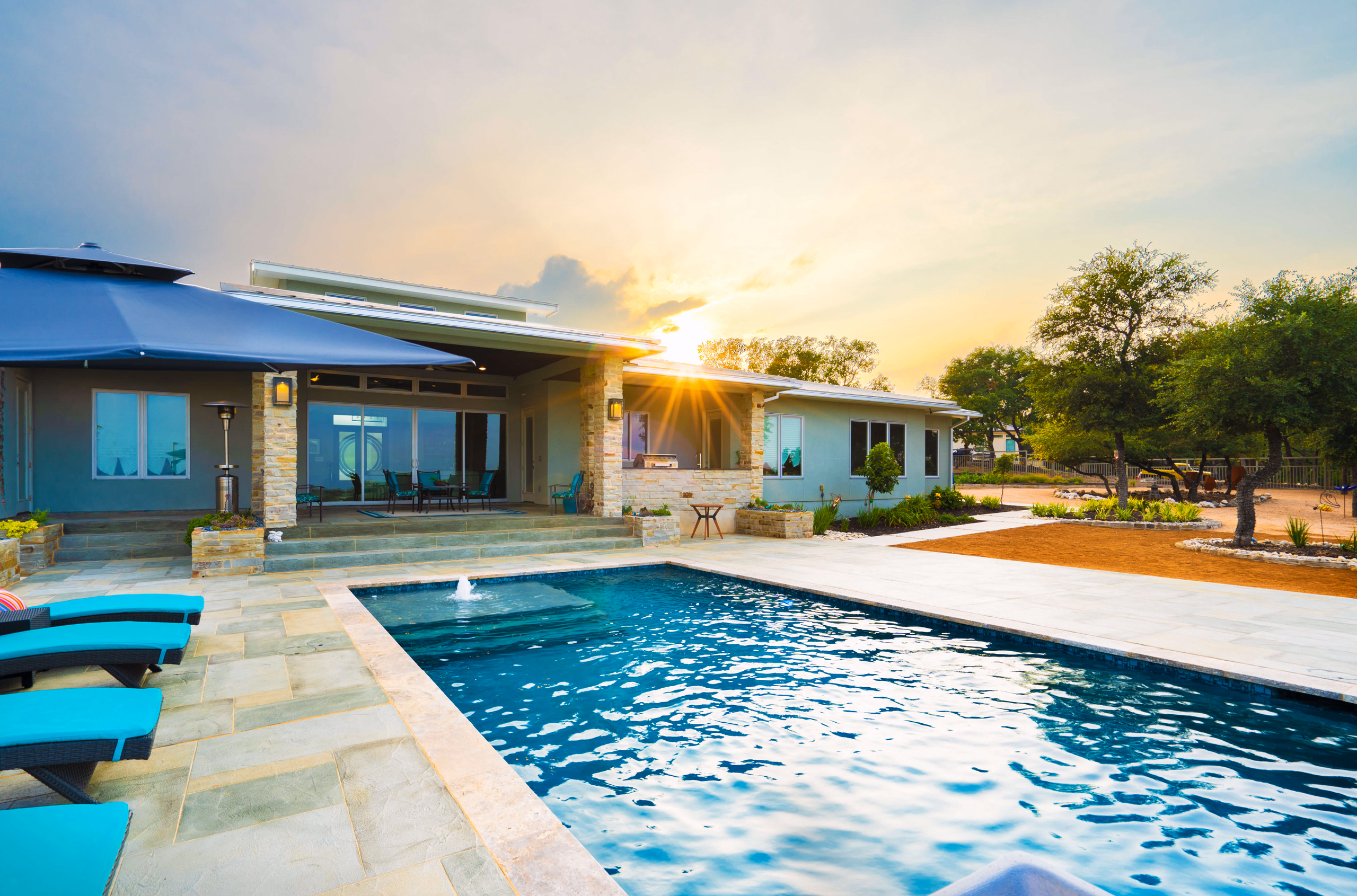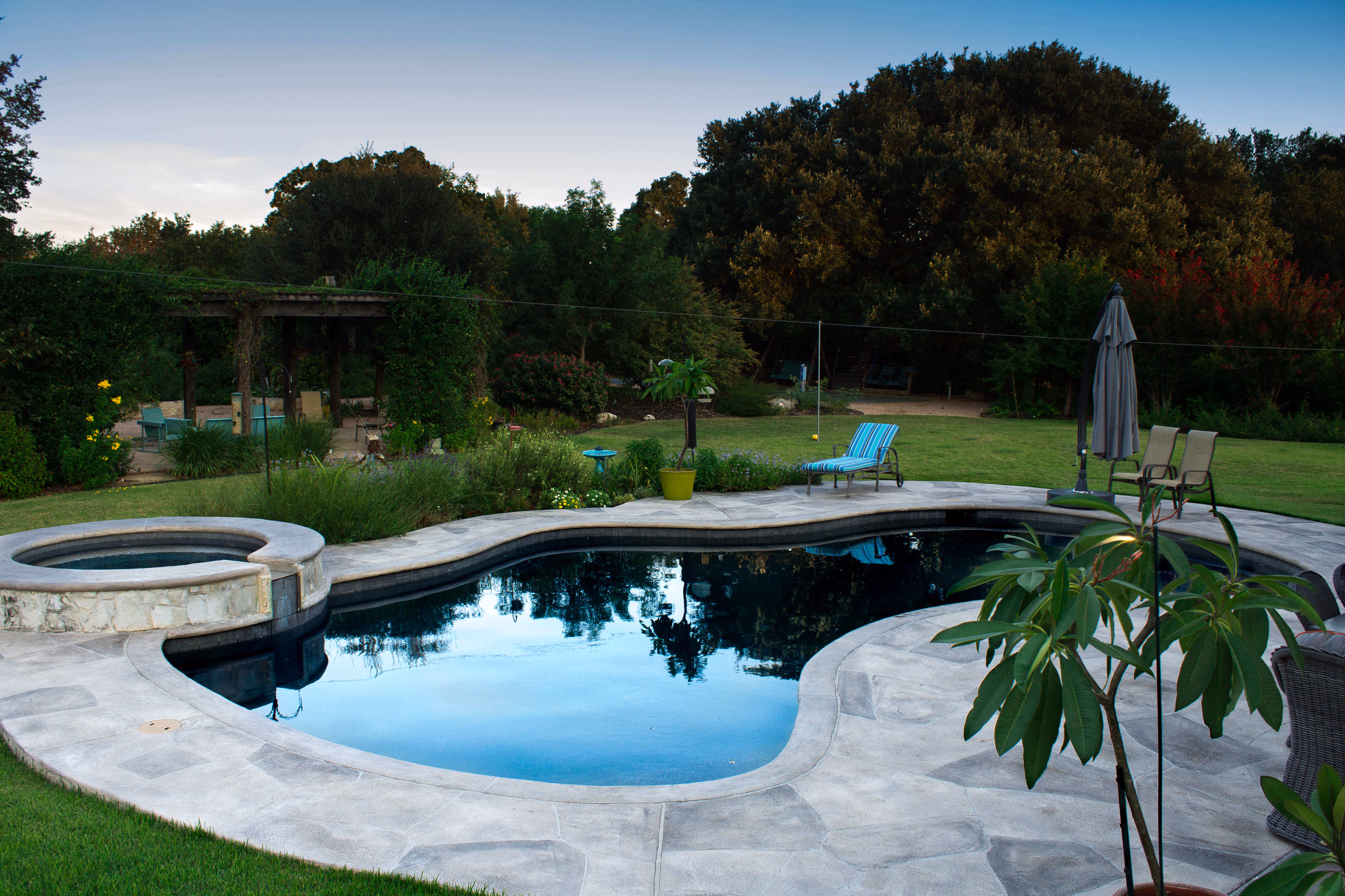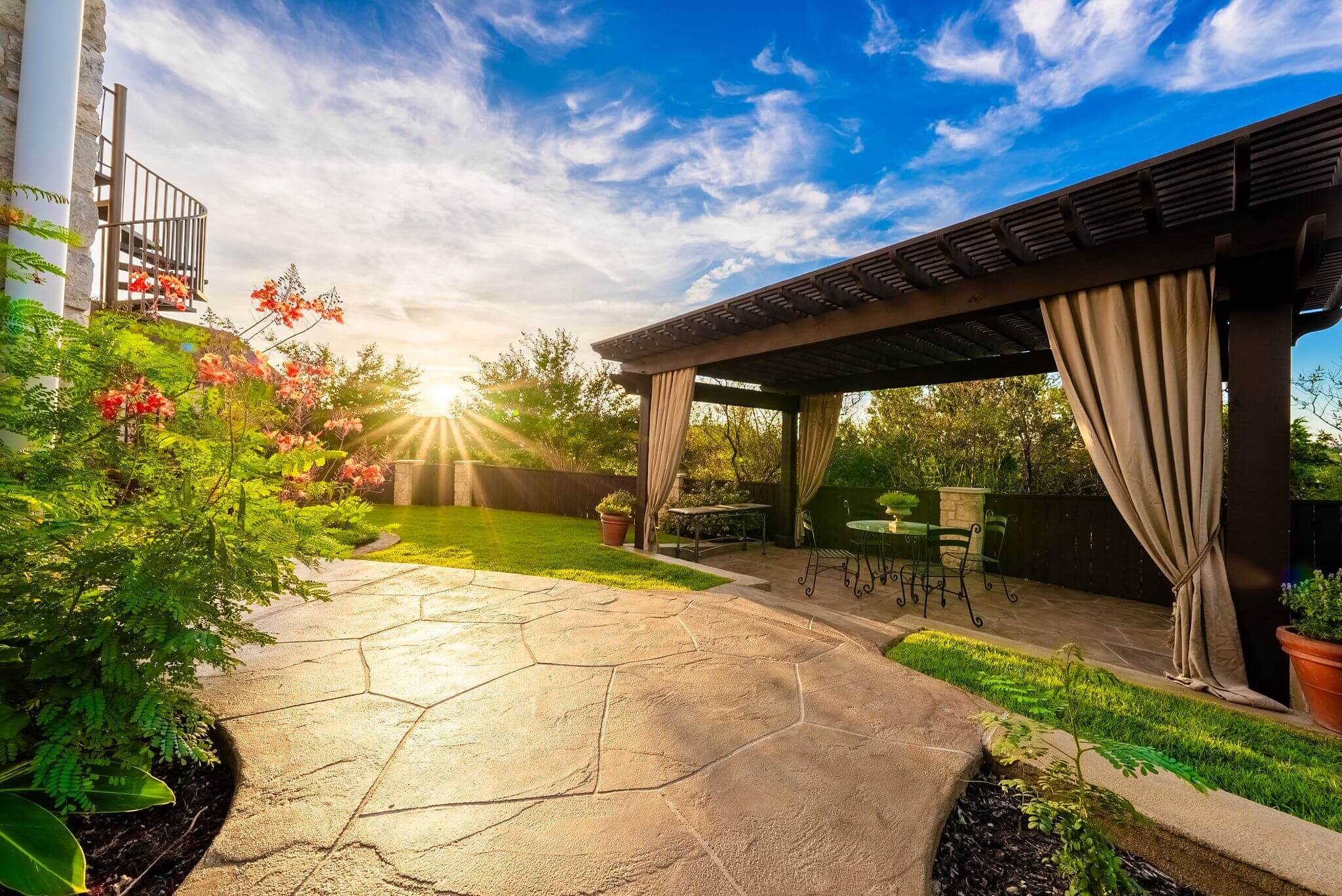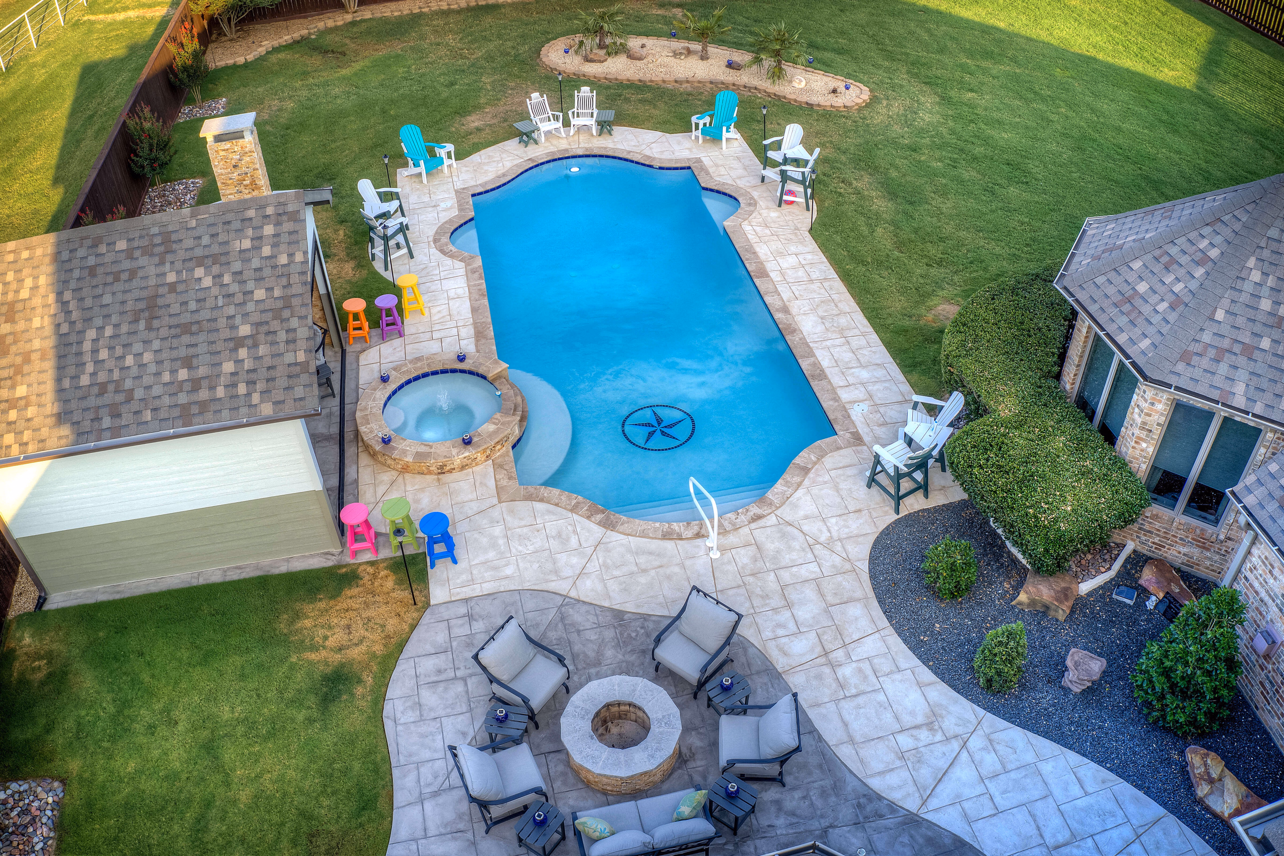 Lakeside Firepit & Seating WallComfortable Backyard PatioConcrete Patio in a Central Texas BackyardAluminum Patio Cover in Texas
