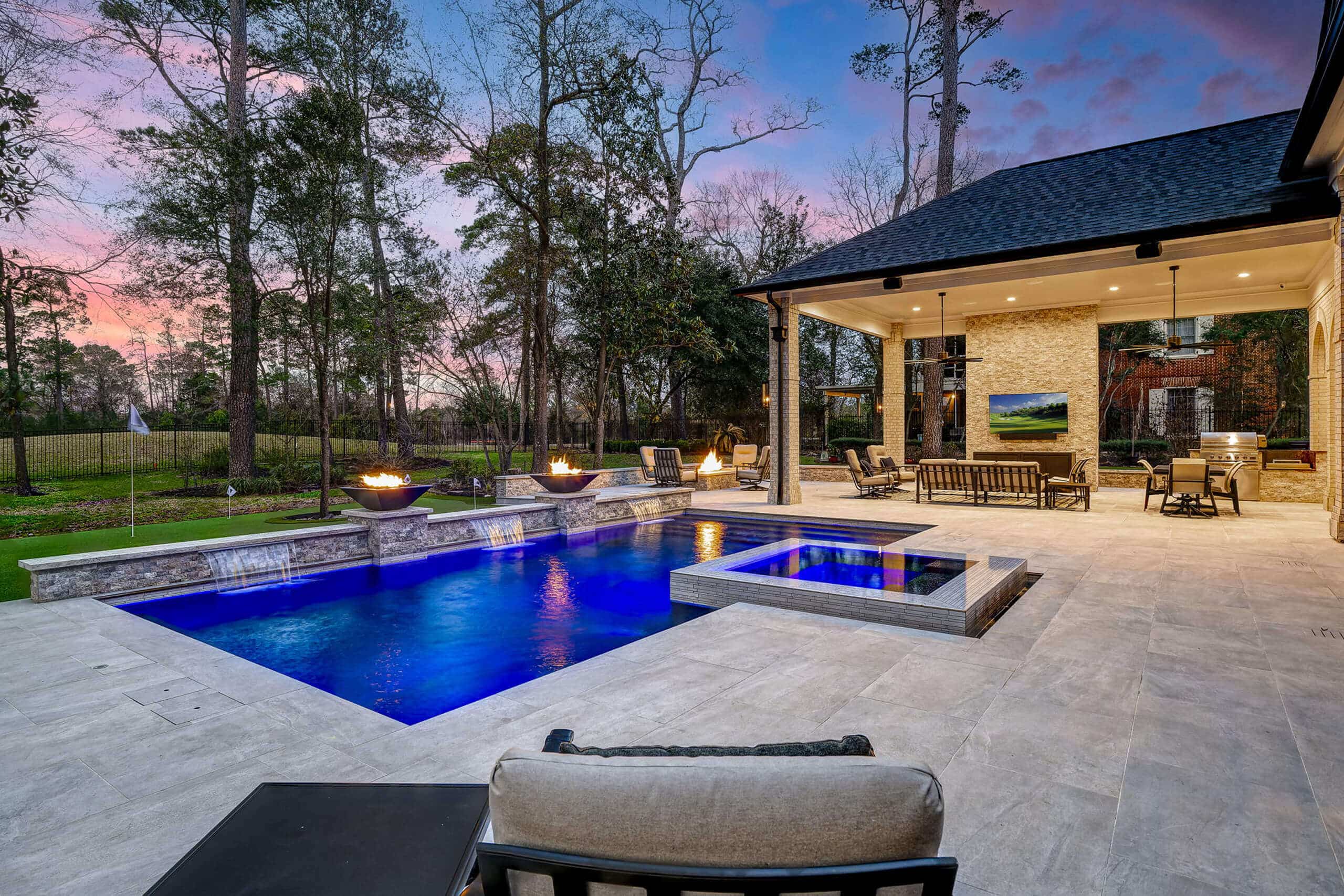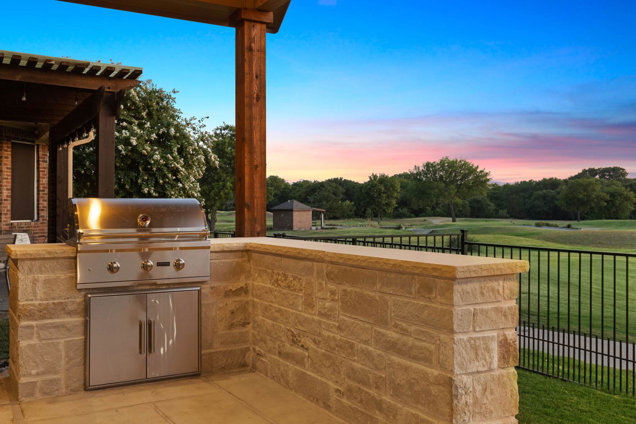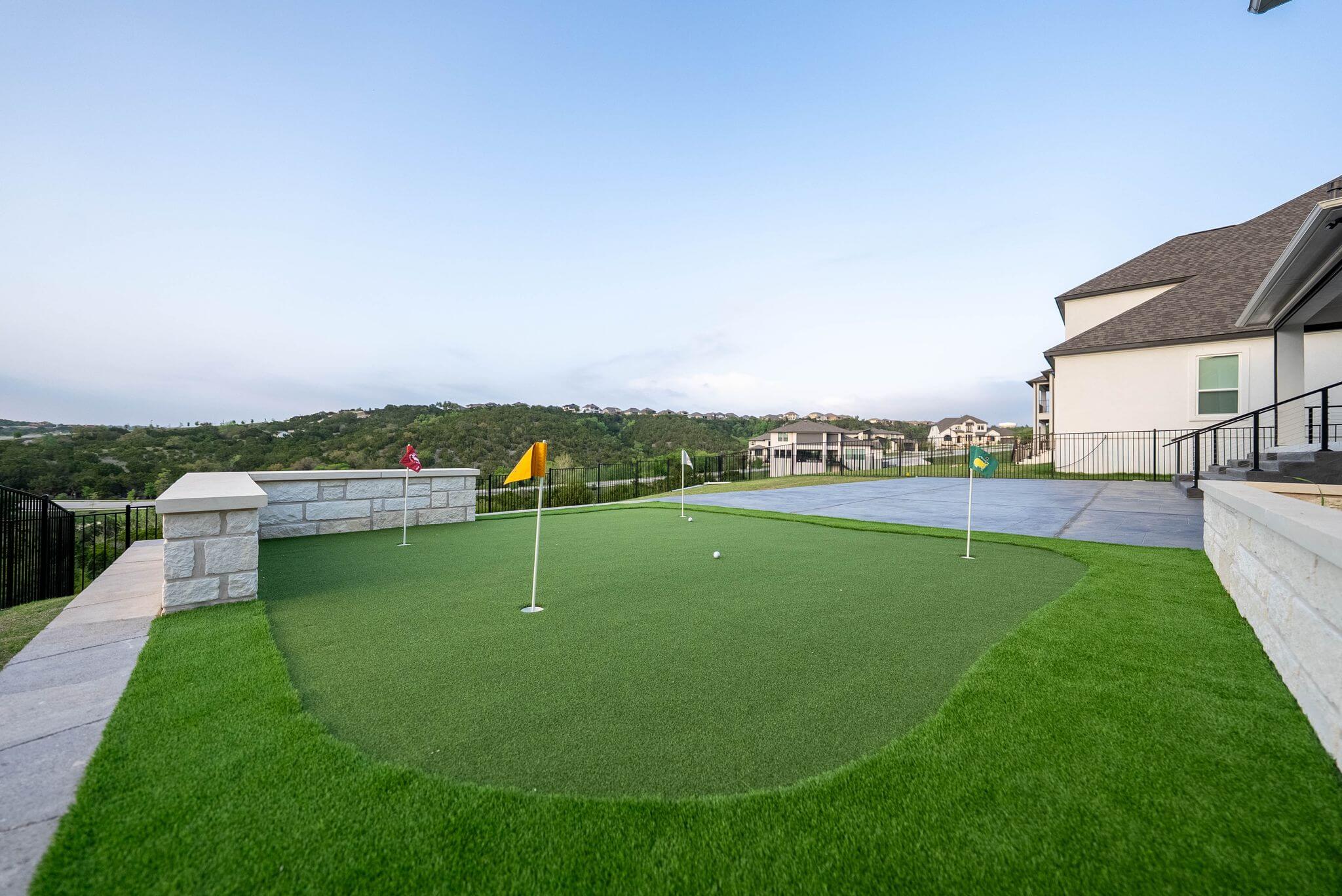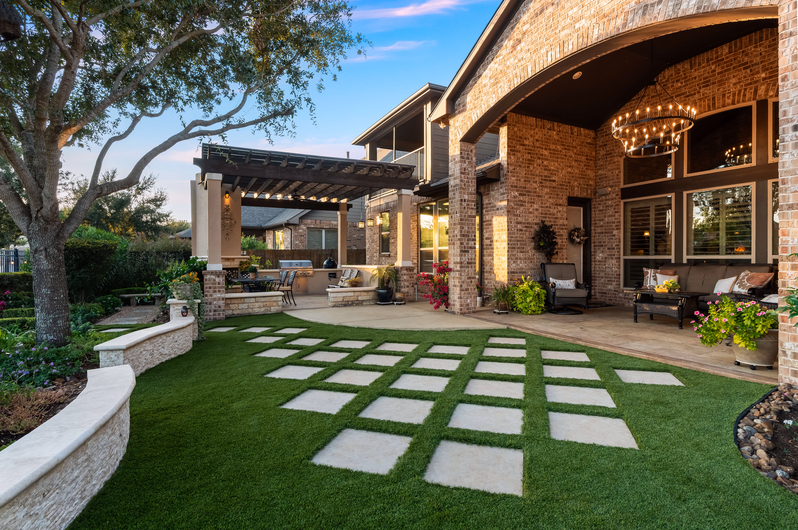 Backyard Turf Putting GreenStunning Sloped Patio Cover & Stone KitchenTexas Patio & Outdoor Living SpacePatio Dining Area