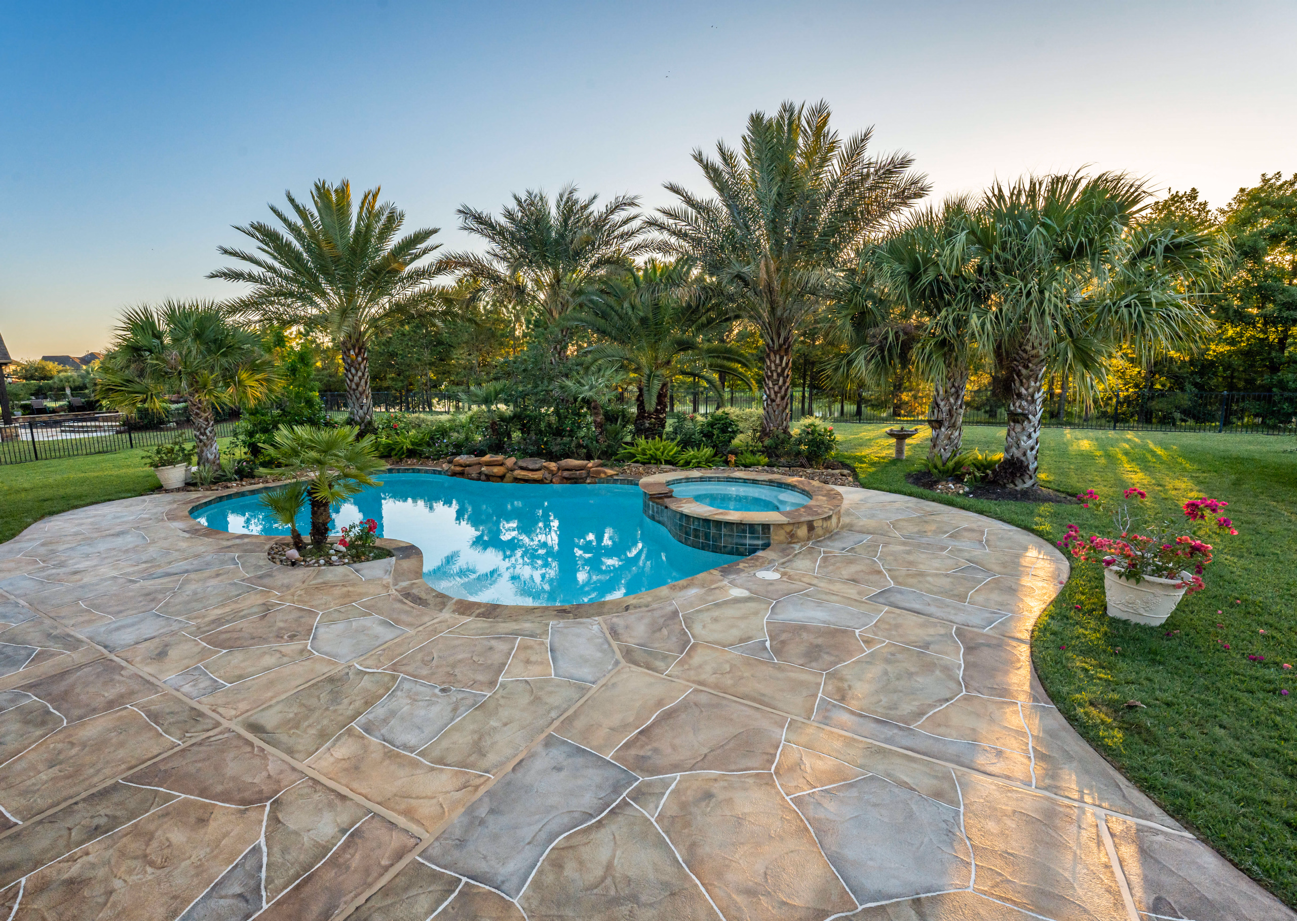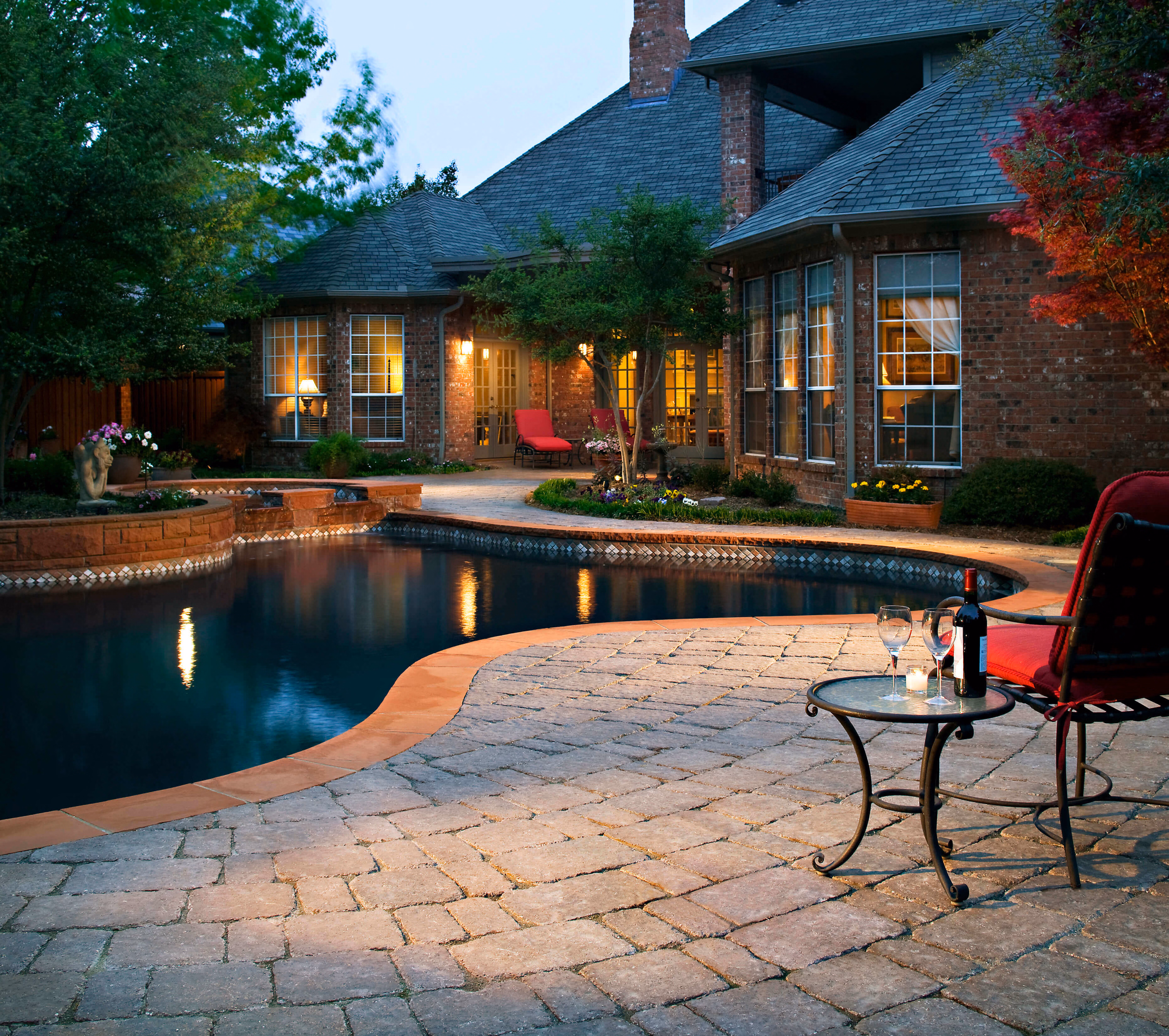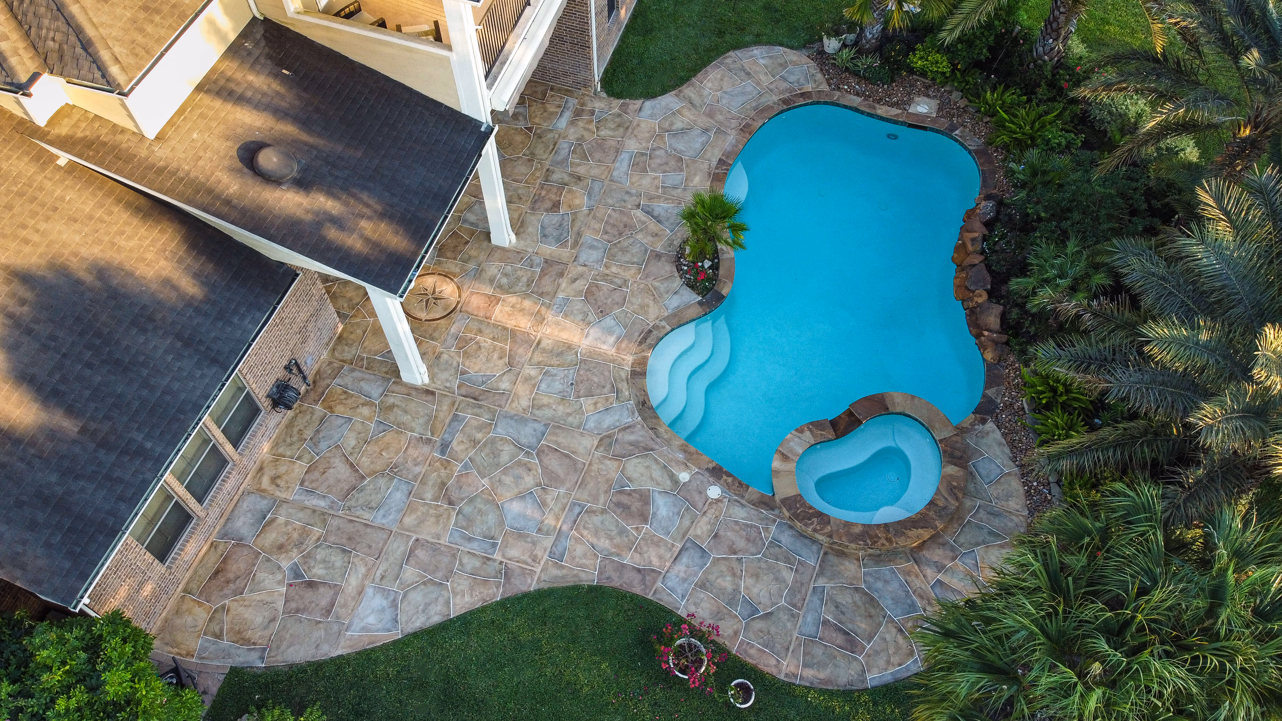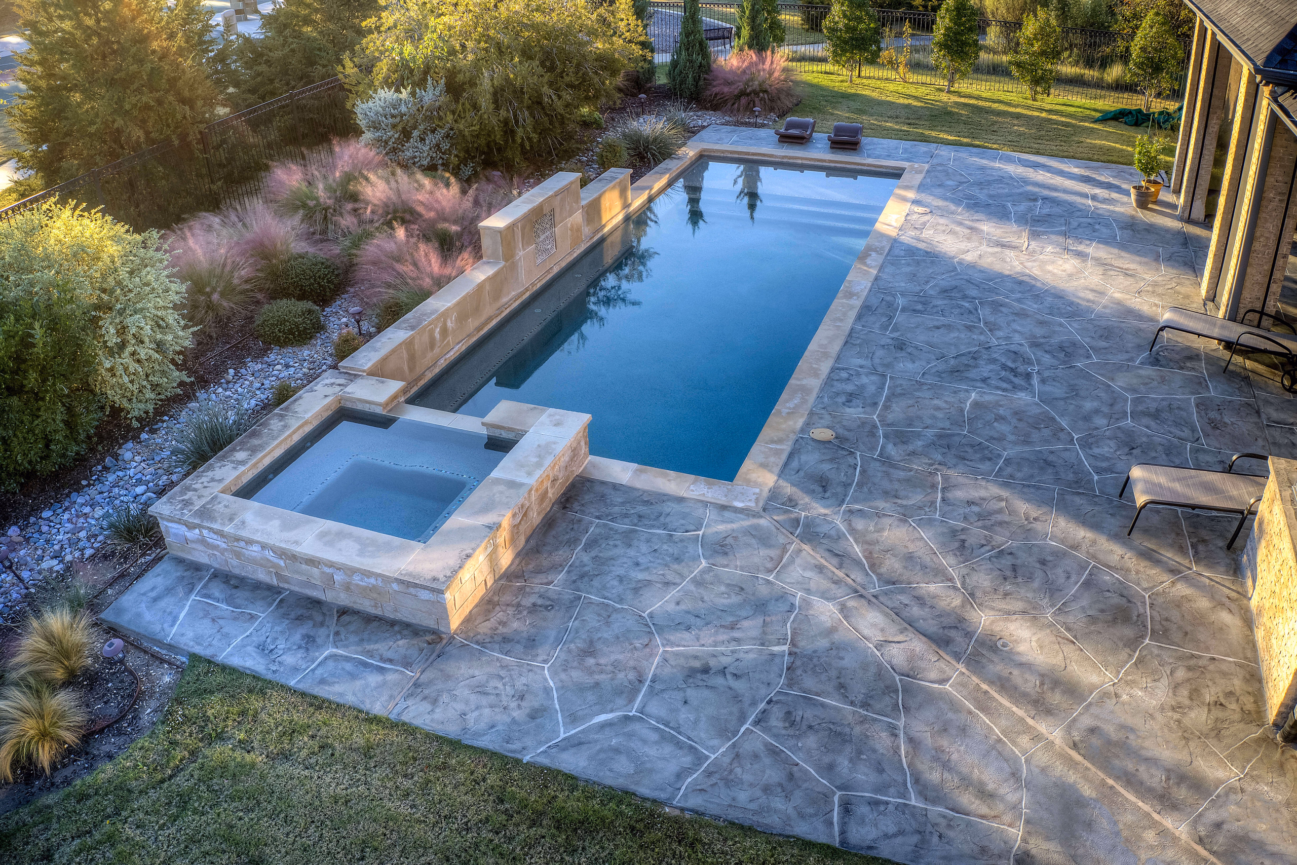 Gorgeous Dark Gray Carvestone PatioUpgraded Backyard Pool Deck & Patio