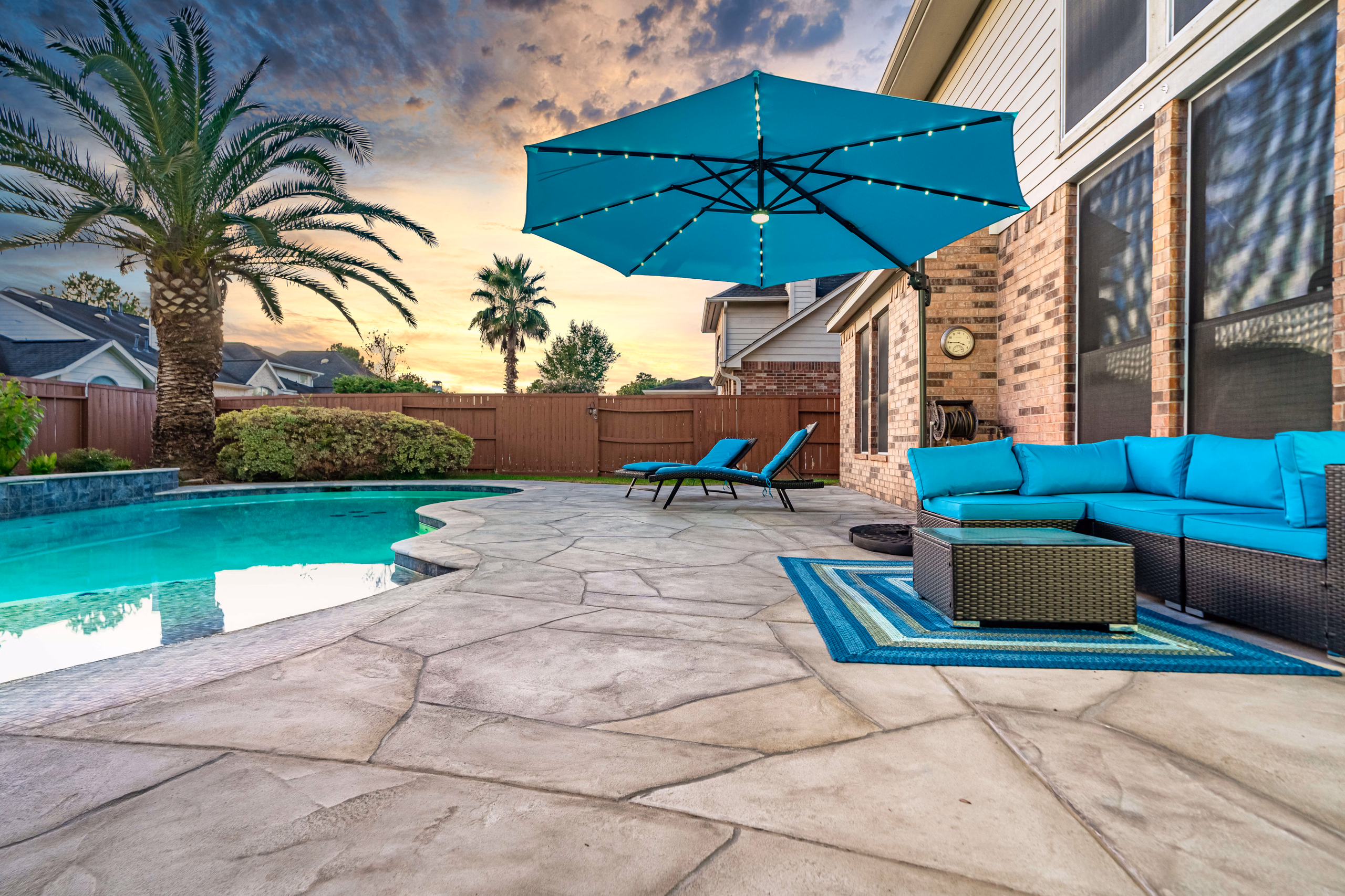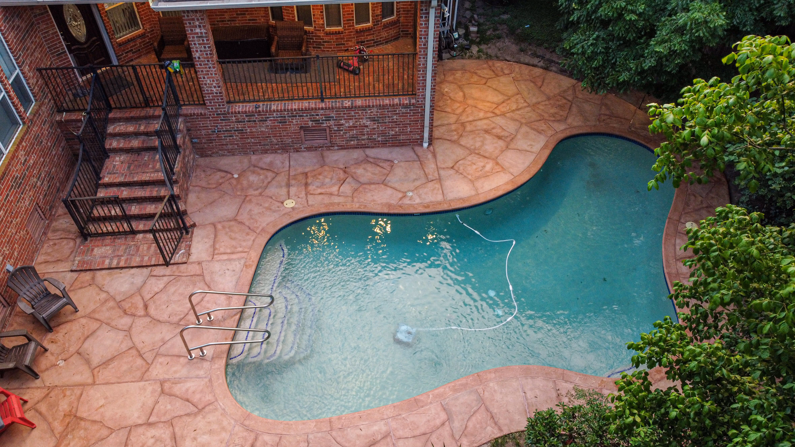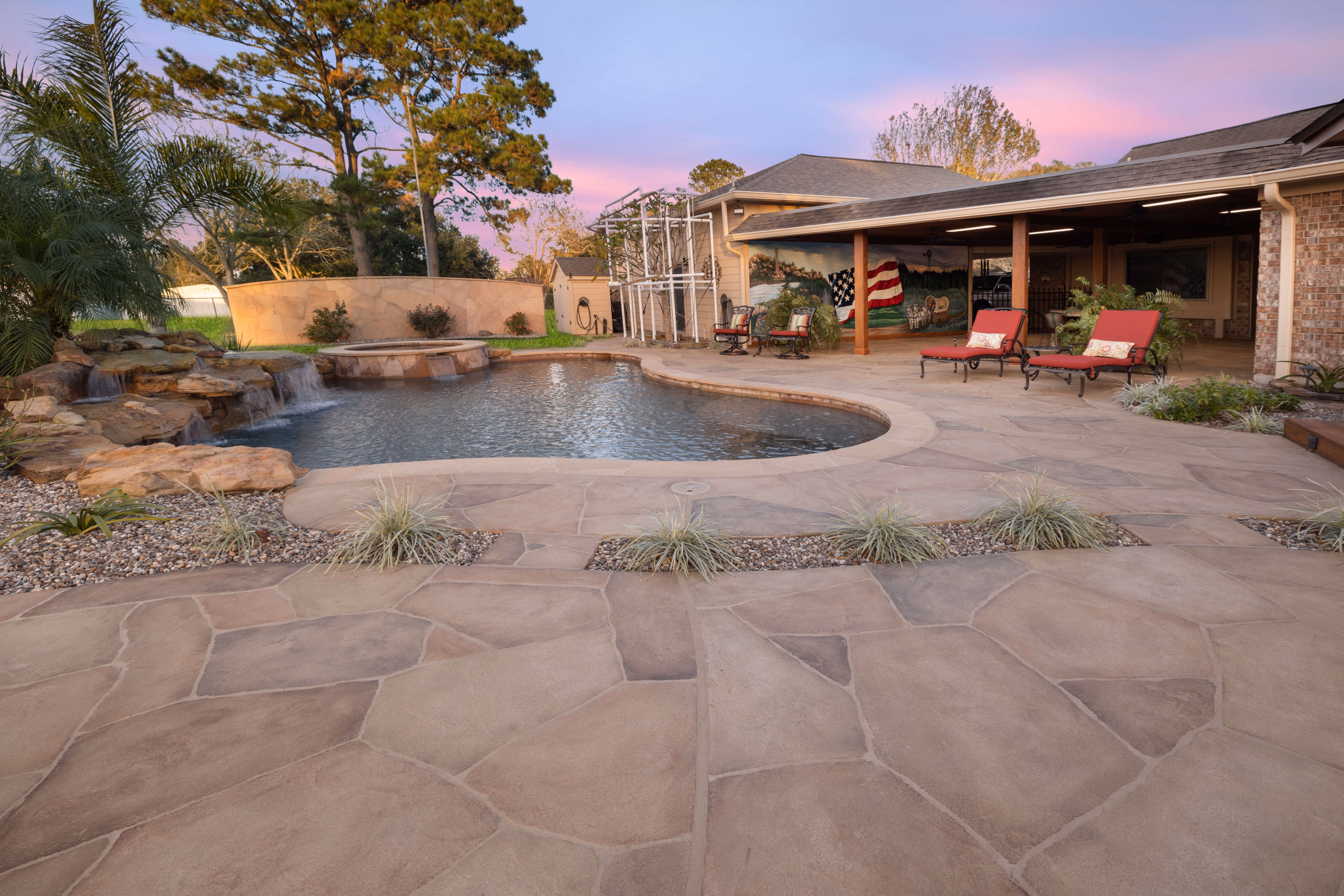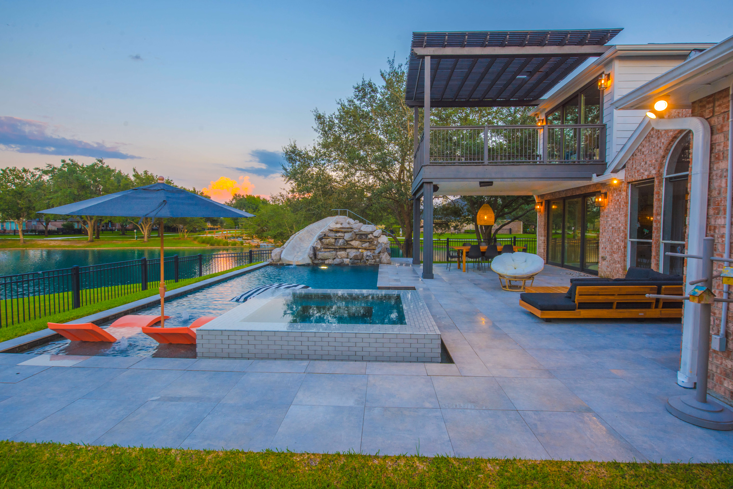 Gorgeous Dark Gray Carvestone PatioUpgraded Backyard Pool Deck & Patio