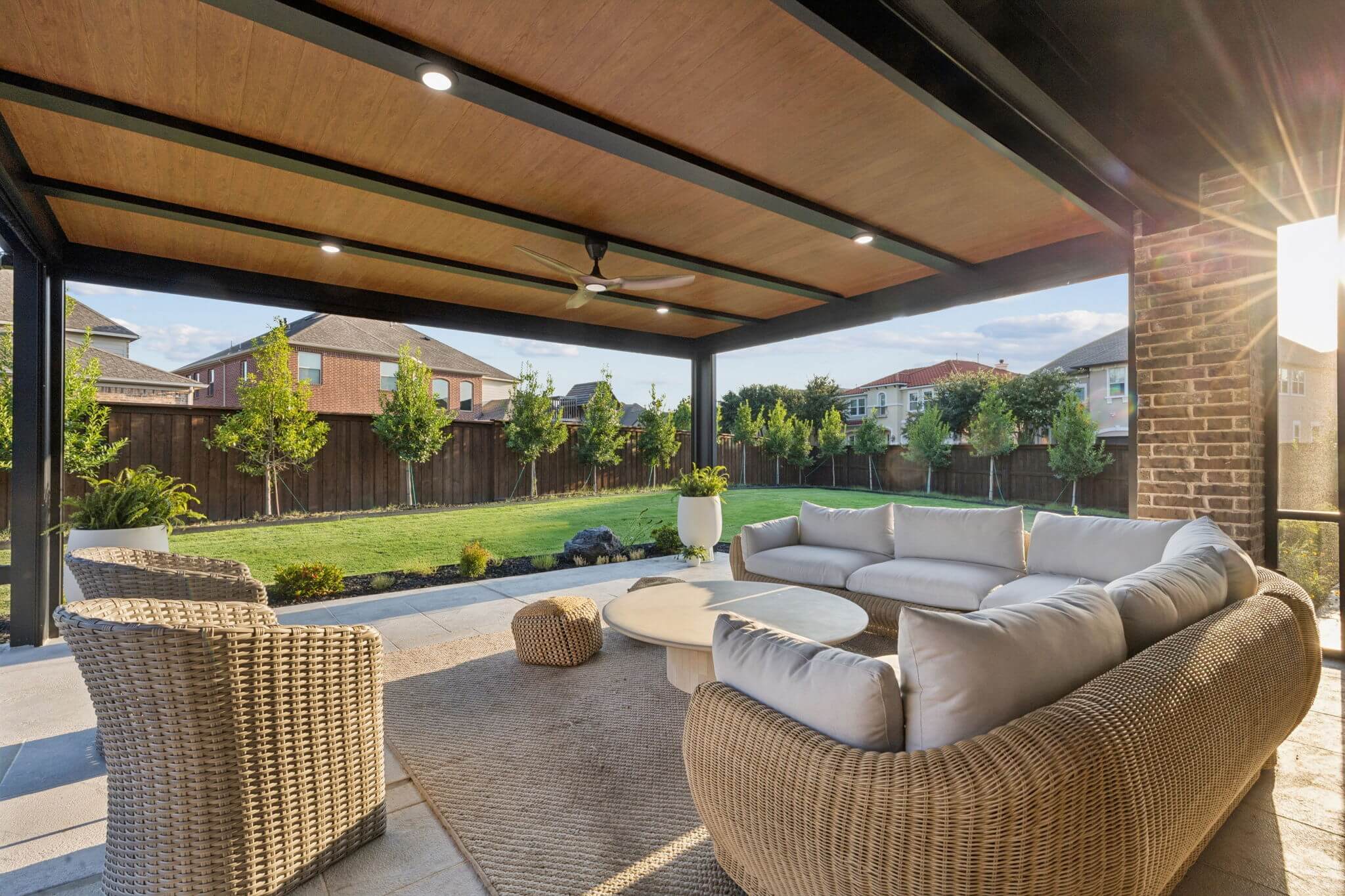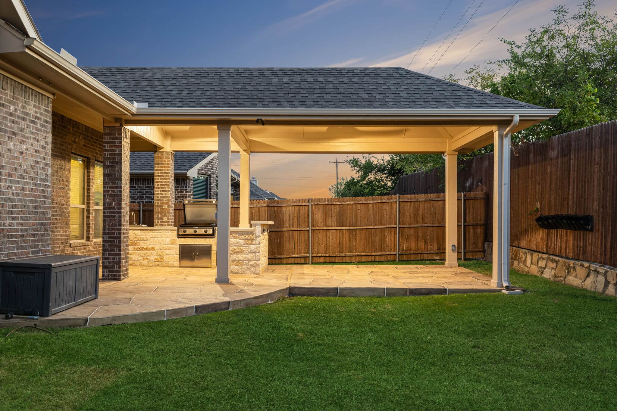 Cozy Backyard Patio CoverCentral Texas Backyard OasisCovered Patio Entertaining SpaceNew Paver Patio in a Dallas Backyard