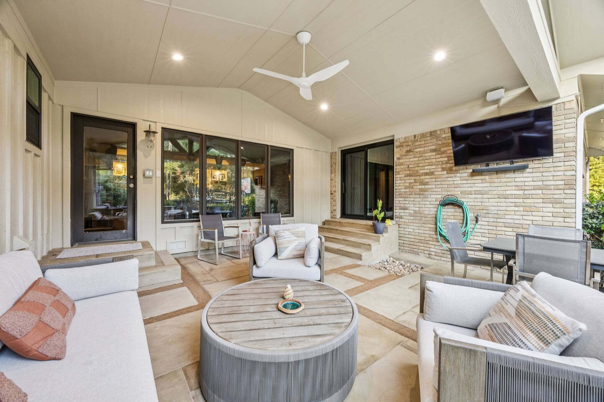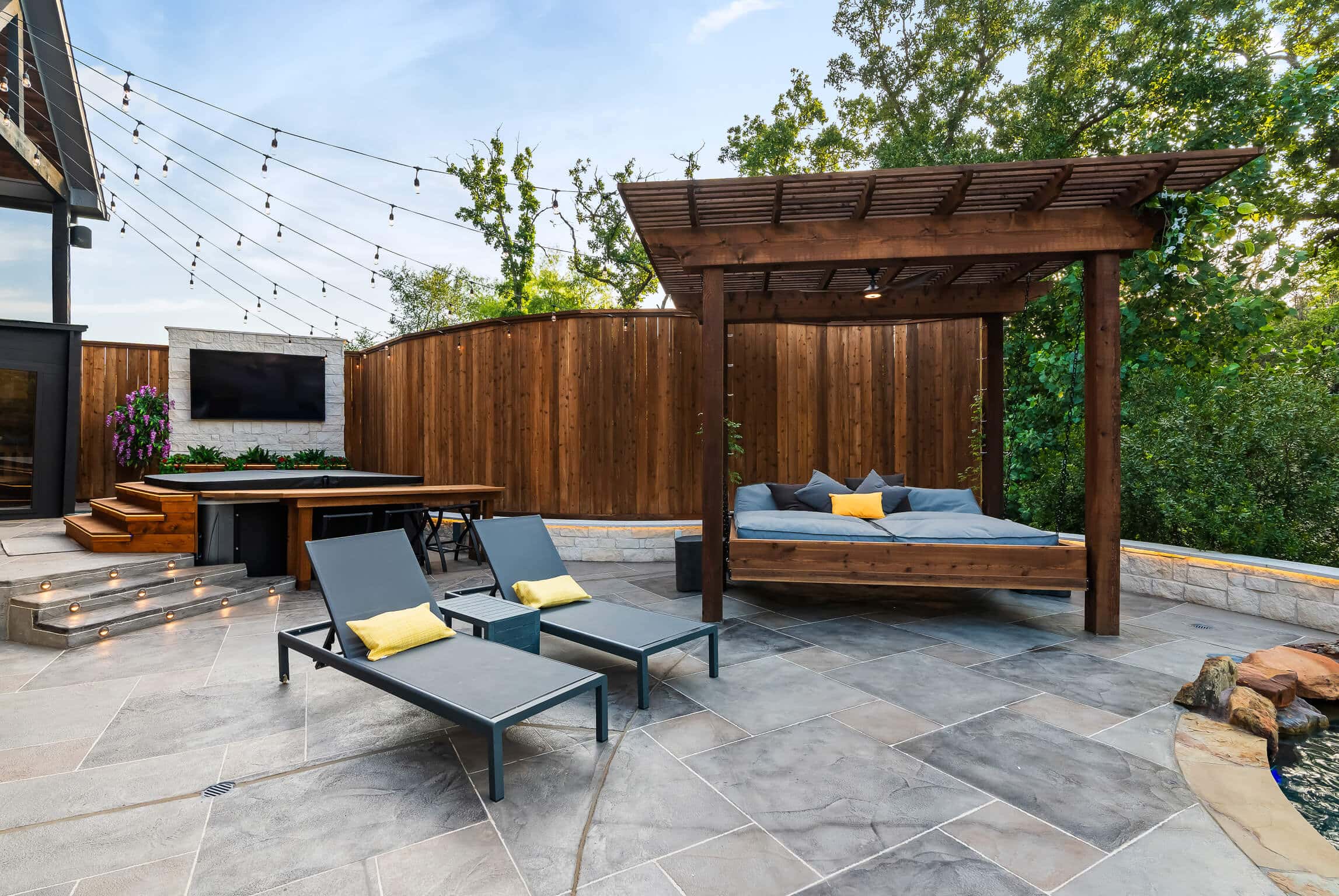 Outdoor Living Entertainment SpaceCozy Outdoor Seating AreaBackyard Oasis in Austin TexasSerene Backyard Retreat