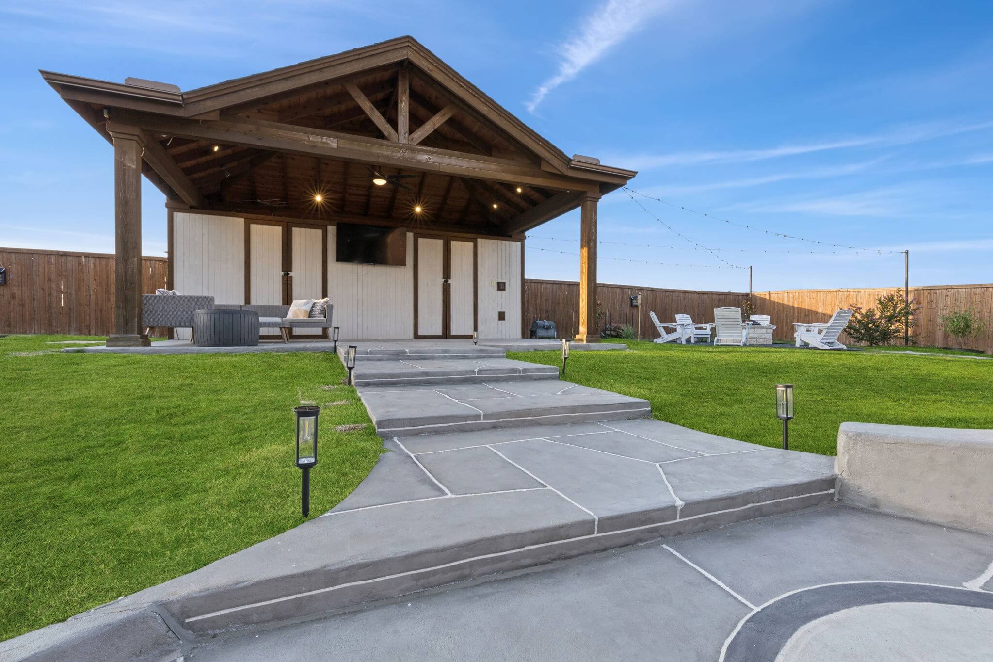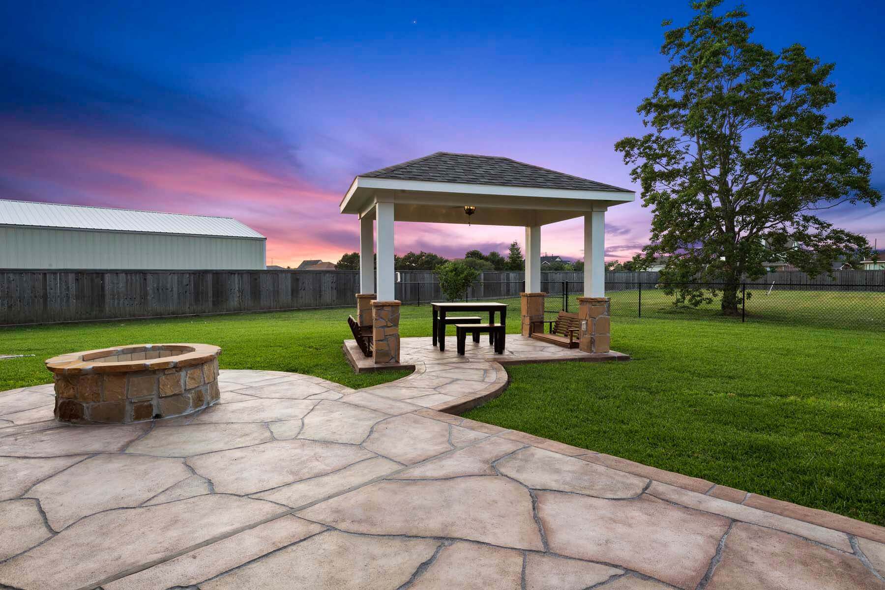Cozy Backyard Firepit and Outdoor Living AreaBackyard Patio with Kitchen & CarvestoneCarvestone Patio & Shade StructureNew 4k Shade Structure & Backyard Lounge