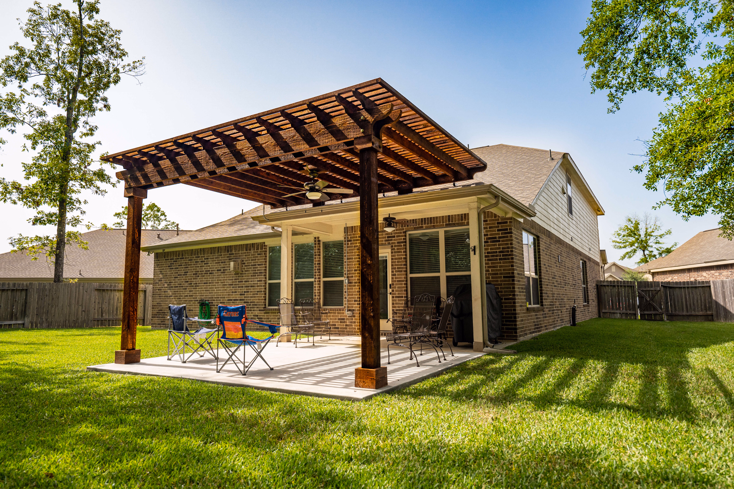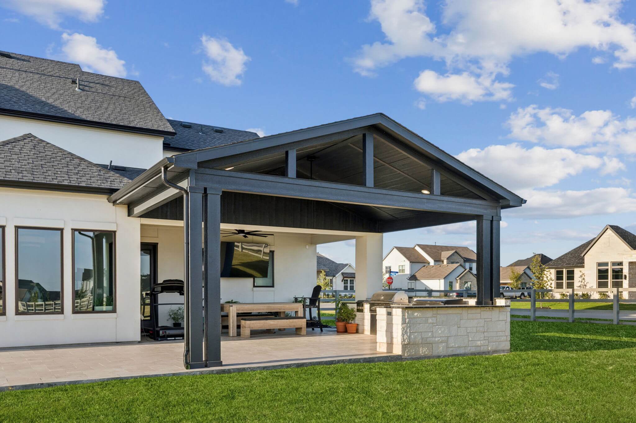 Comfortable Patio Hangout with Aluminum PergolaShade Structure & Patio in the Hill CountrySleek Aluminum Covered PatioBackyard Patio Remodel