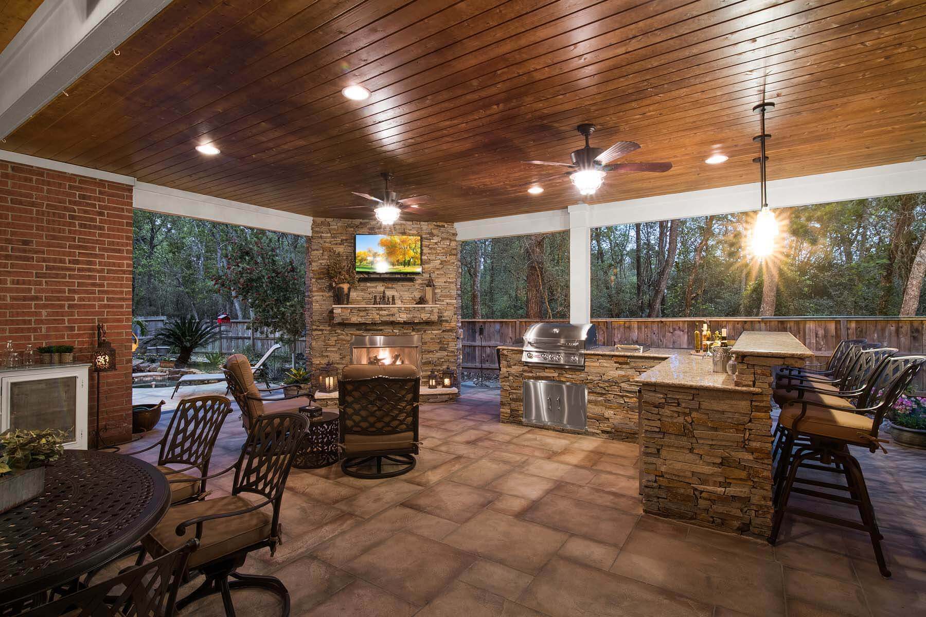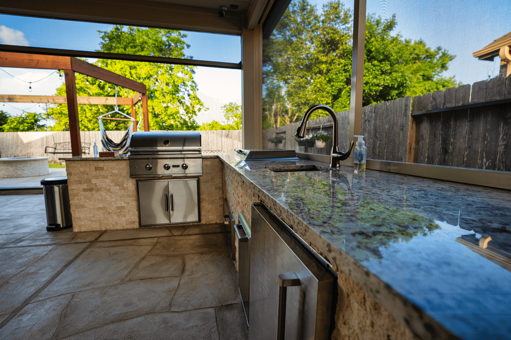 Outdoor Living Patio and KitchenBackyard Poolside Design