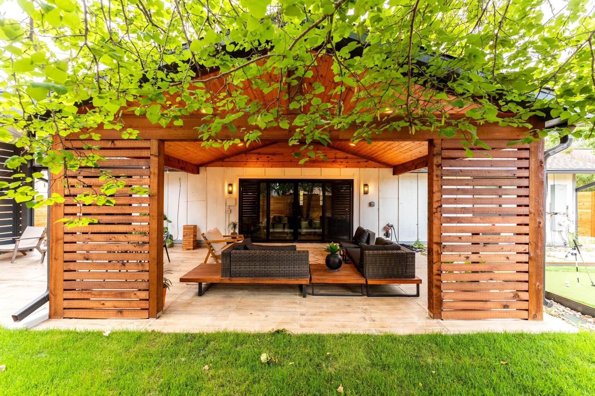 Cedar Patio Cover OasisPerfect Outdoor Living SpaceCentral Texas Backyard OasisRelaxing Backyard Outdoor Living Space