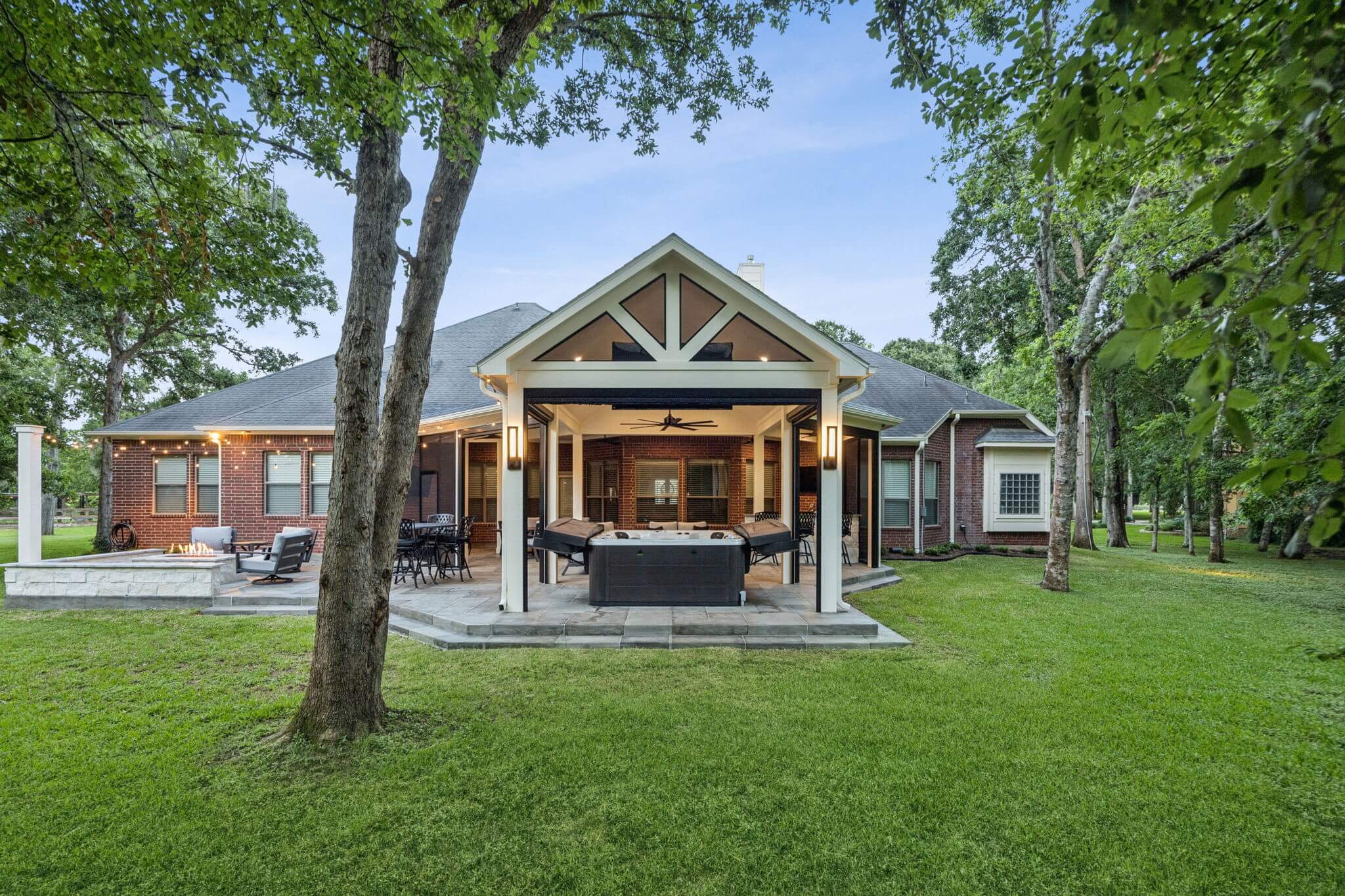Texas Backyard RetreatOpen Gable Covered PatioPatio Cover with Stone Fireplace & Cedar AccentsBeautiful Backyard Paradise