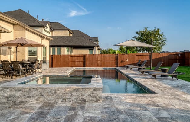 A travertine paver has an extremely high PSI rating and can be purchased in colors that make it a pleasant option for our Texas pool decks. It offers a classic look which will stand the test of time.