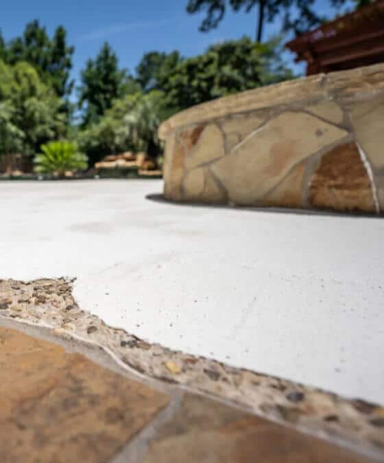 When renovating a pool deck, there are many different styles to consider. Whether you’re looking for a modern aesthetic or simply desiring the pool deck be understated, a textured stamp can achieve both while providing a durable, beautiful surface built for the Texas heat. Additionally, a Grecian aesthetic can create a classic, spa-like feel that can make a Tuesday night feel like the weekend.